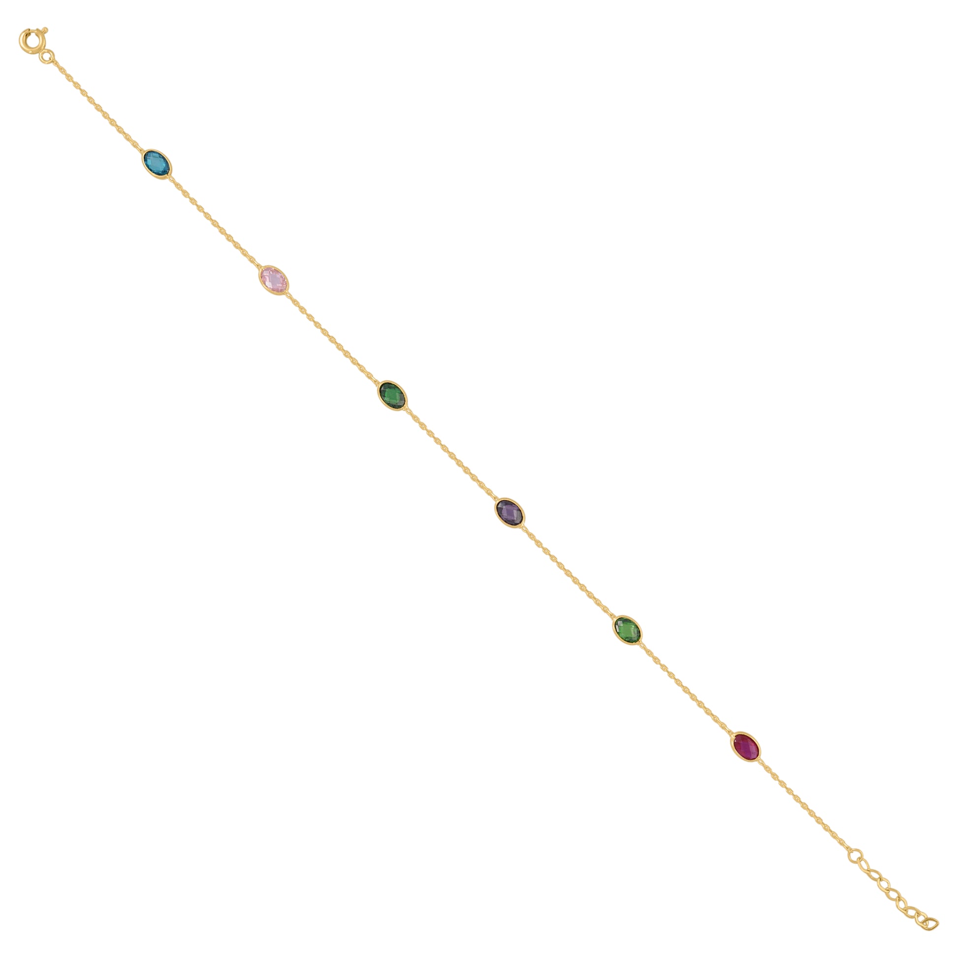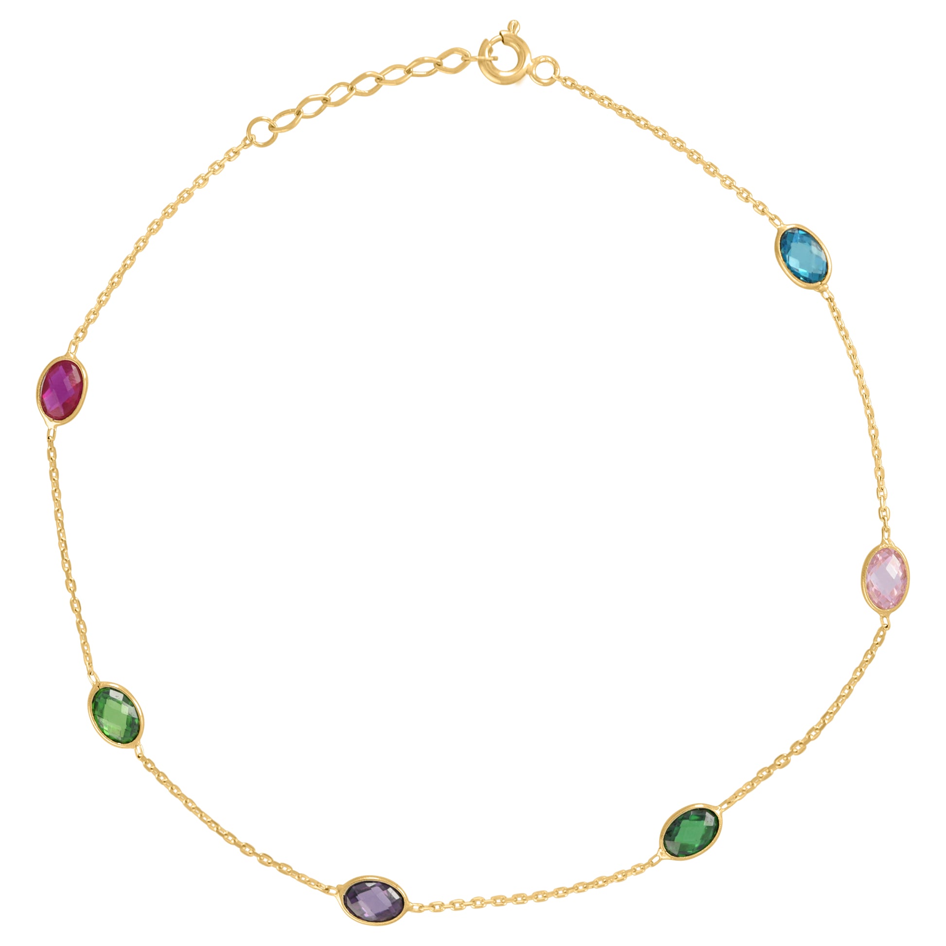 14Kt Yellow Gold Womens Multi-Color Oval Cubic Zirconia Chain Anklet Size 10 Inches