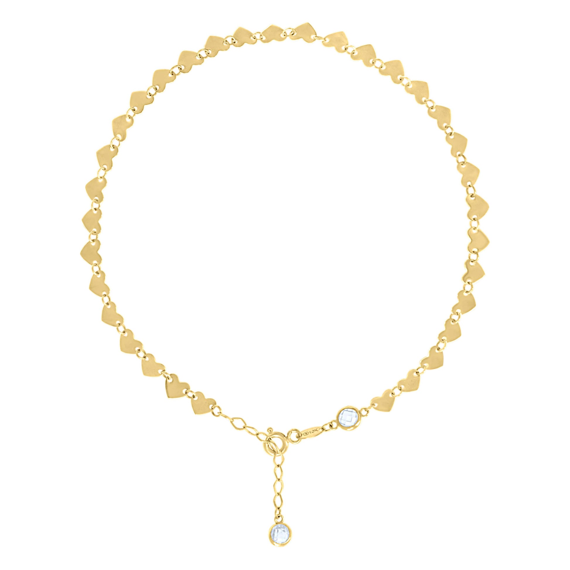 14kt Yellow Gold Womens Cubic-Zirconia Heart Link Anklet Size 10 Inches
