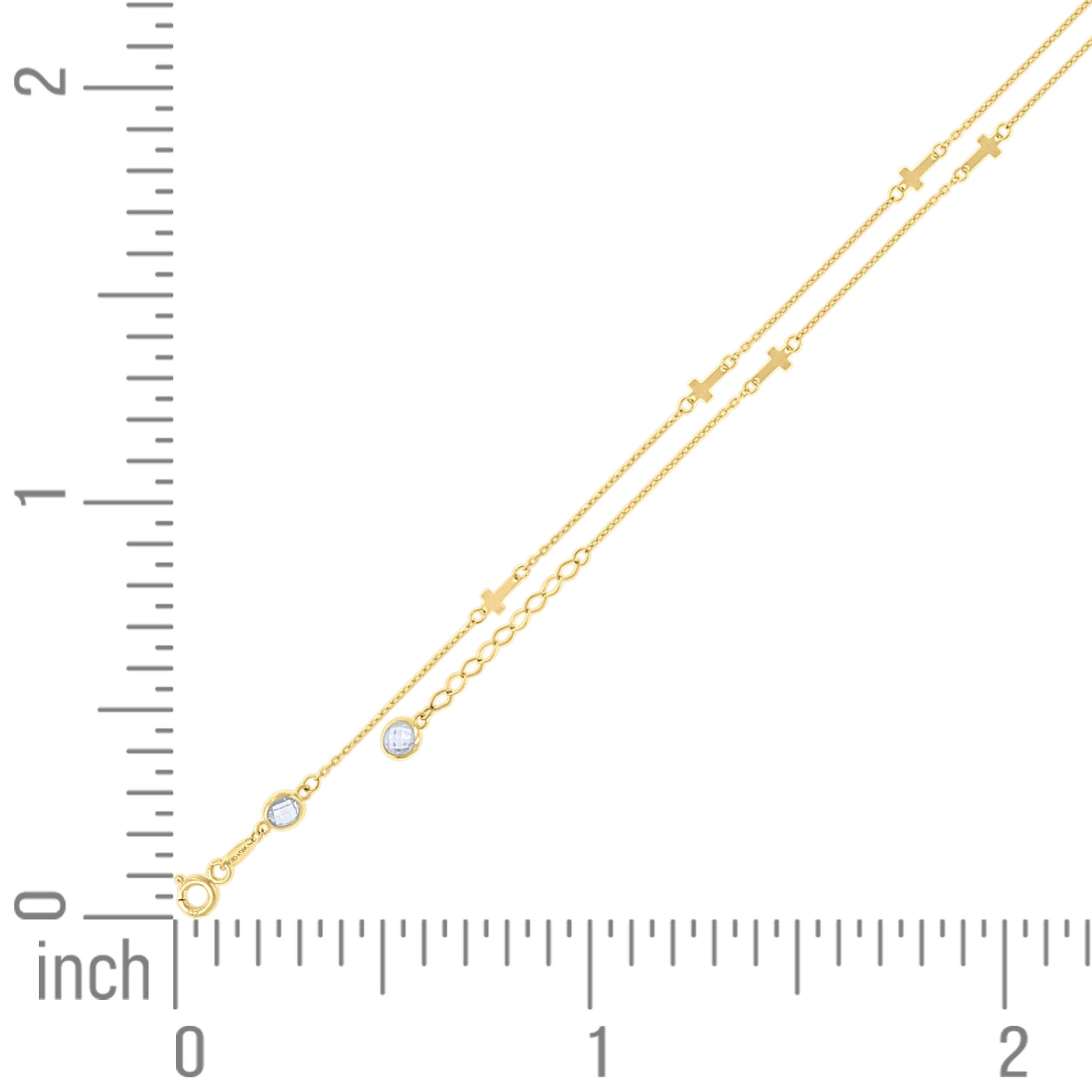 14kt Yellow Gold Womens Cubic-Zirconia Cross Link Anklet Size 10 Inches