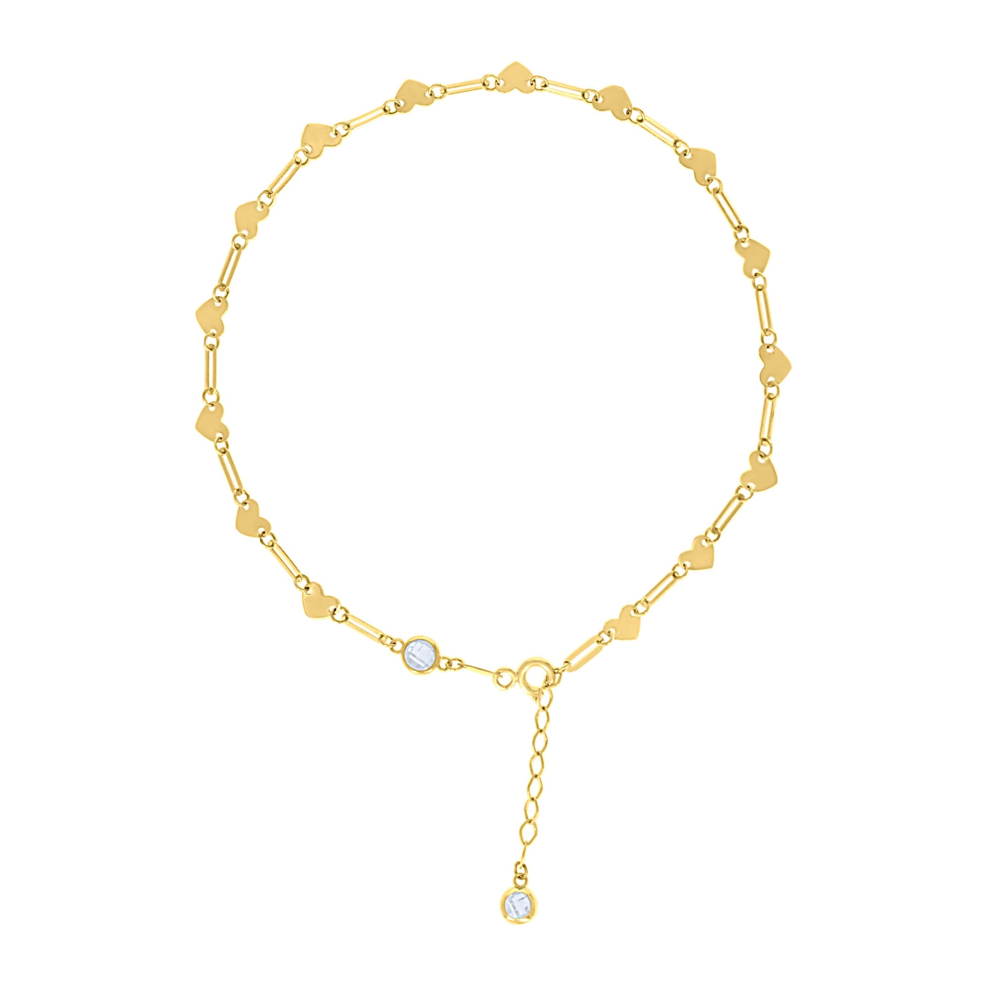 14kt Yellow Gold Womens Cubic-Zirconia Heart Link Anklet Size 10 Inches
