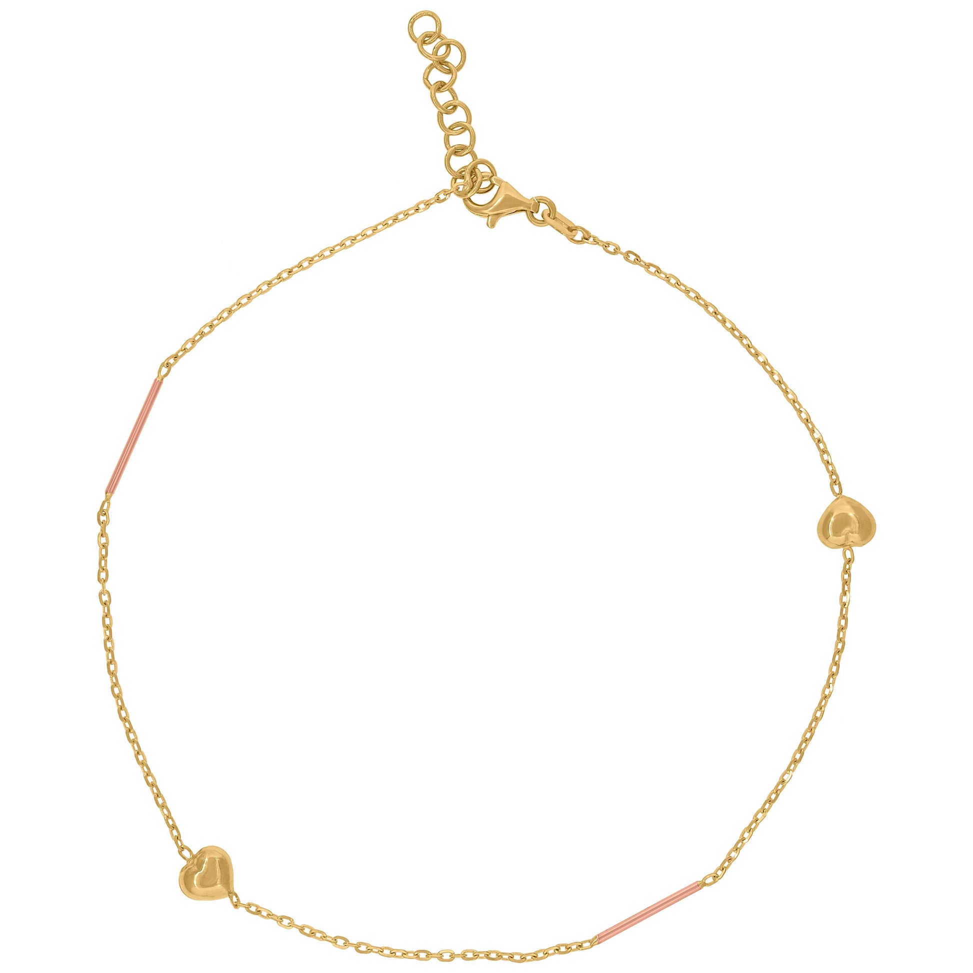 14Kt Two-Tone Gold Womens Polished Finish Heart Anklet