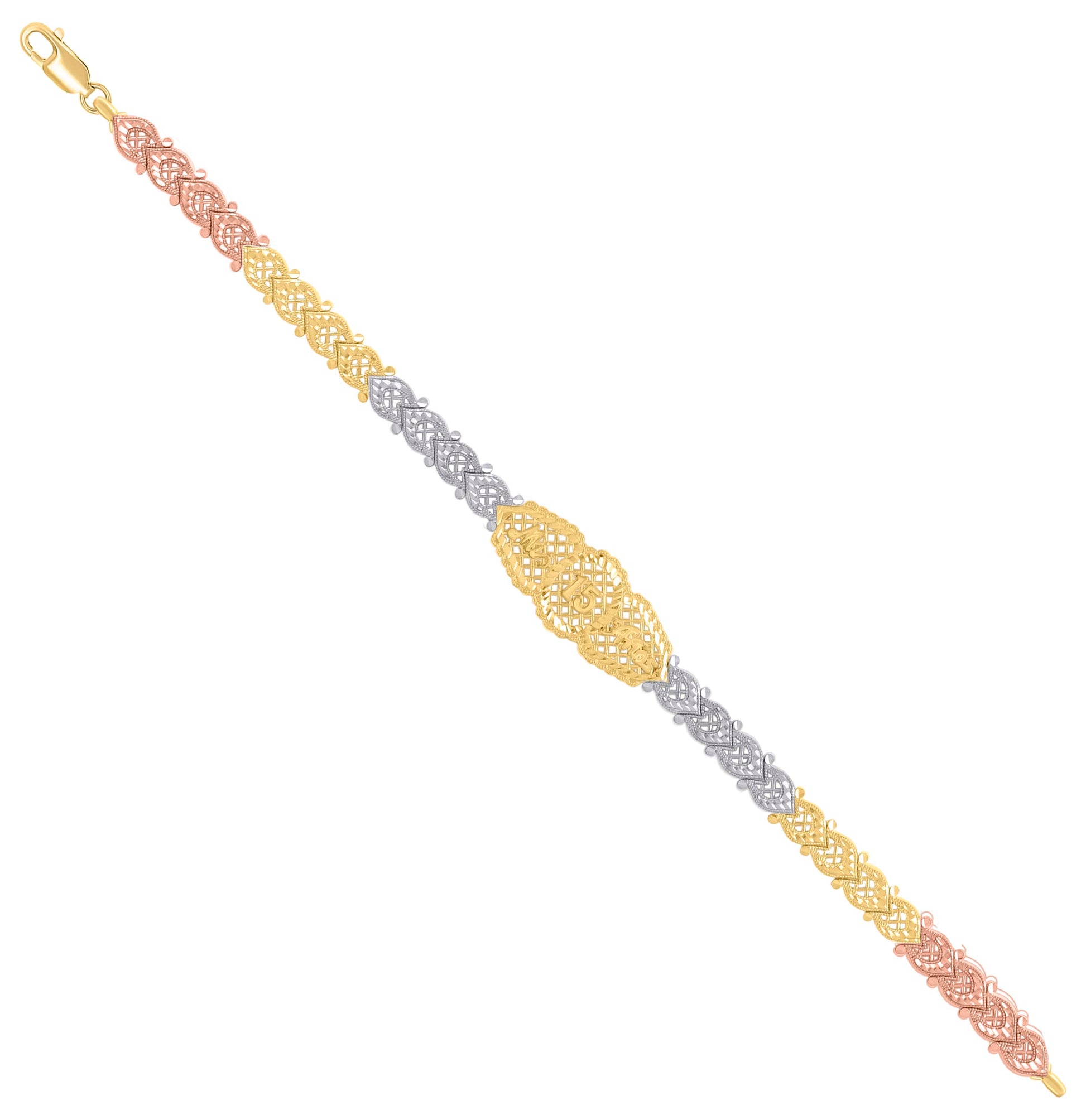 14kt Tri-Color Gold Womens 15 Quinceanera Charm Bracelet