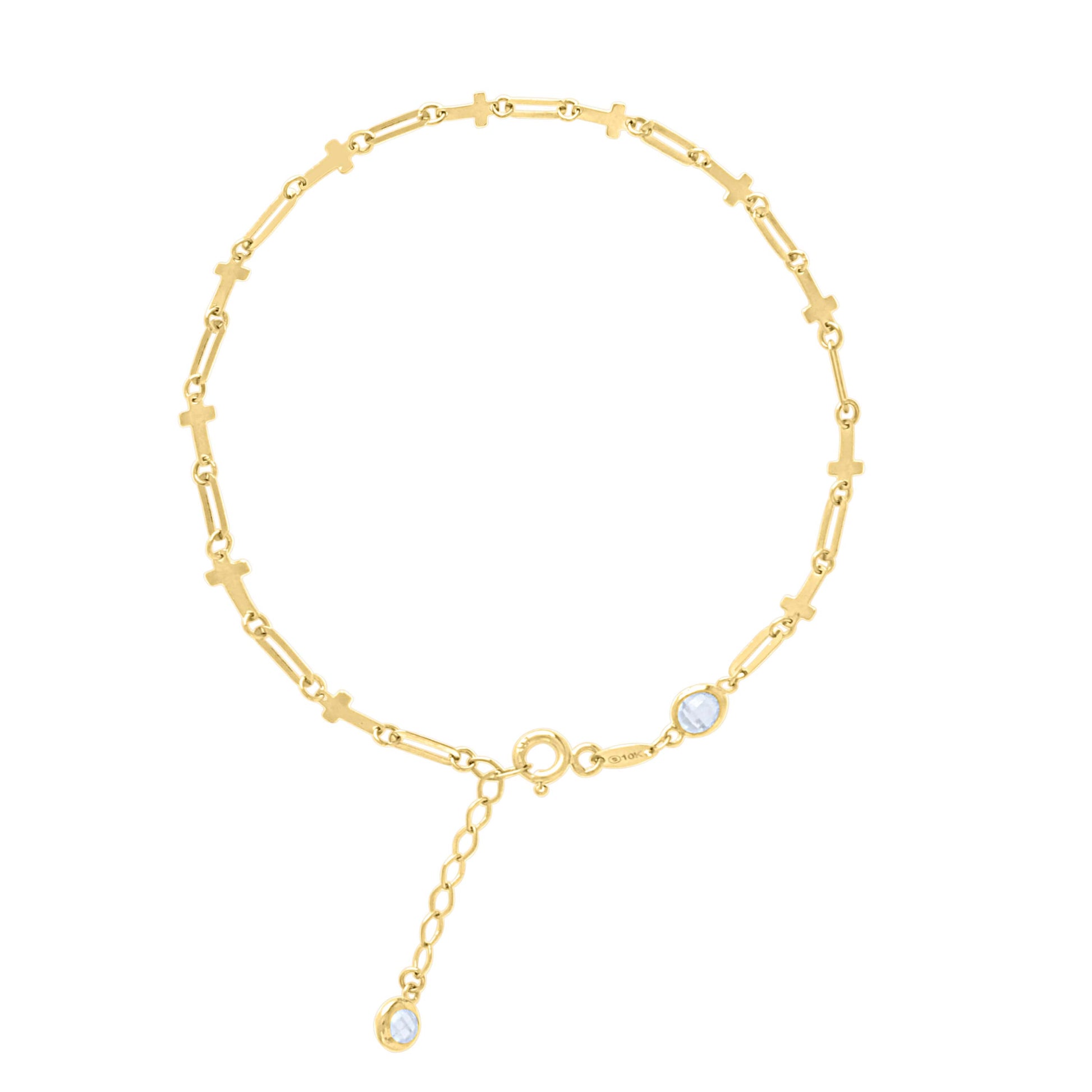 14kt Yellow Gold Womens Cubic-Zirconia Cross Link Bracelet Size 8 Inches