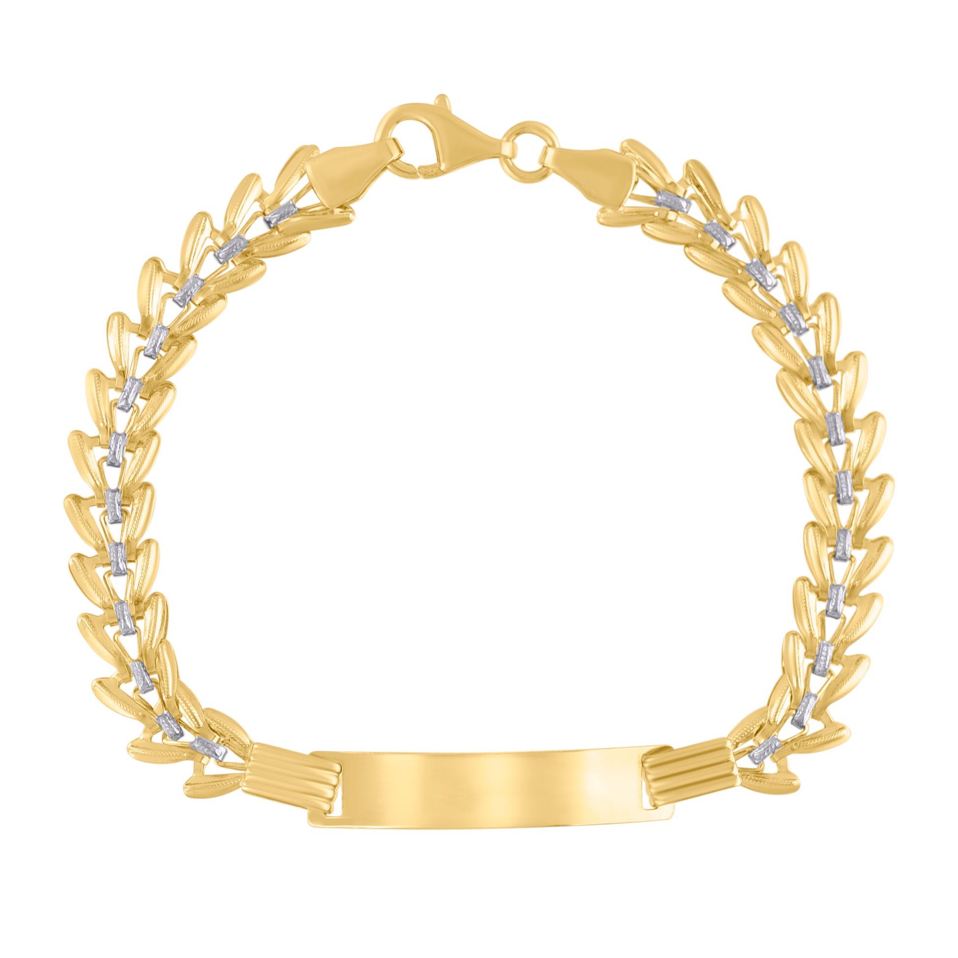 14kt Two-tone Gold Womens Fashion Link ID Bracelet Size 6 Inches