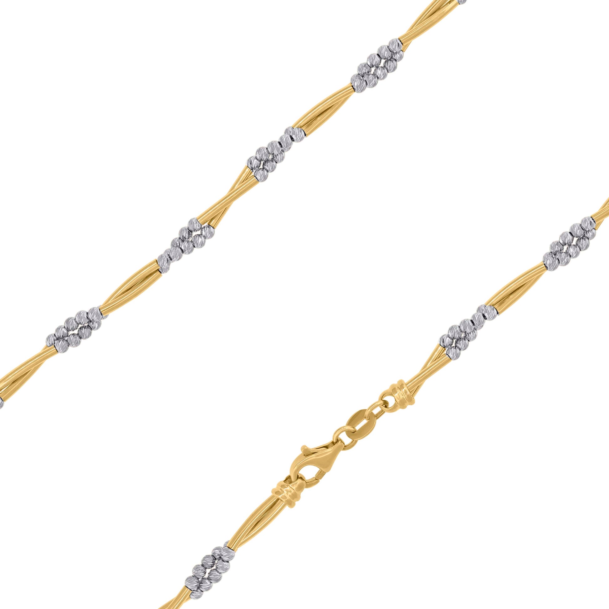 14Kt Two-Tone Gold Womens Polished Finish Textured Twisted Beaded Necklace Size 18 Inches
