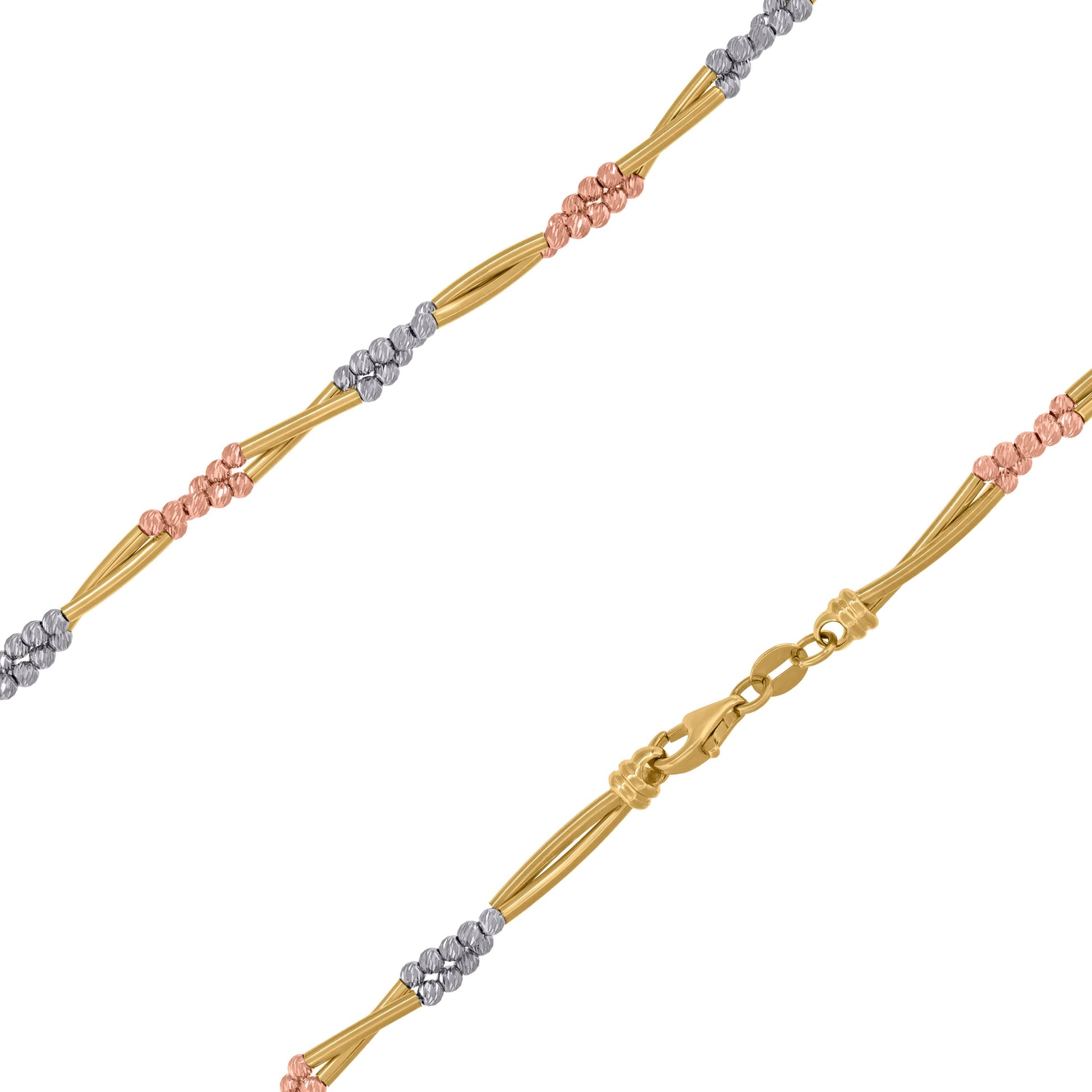 14Kt Tri-Color Gold Womens Polished Finish Textured Twisted Beaded Necklace Size 18 Inches