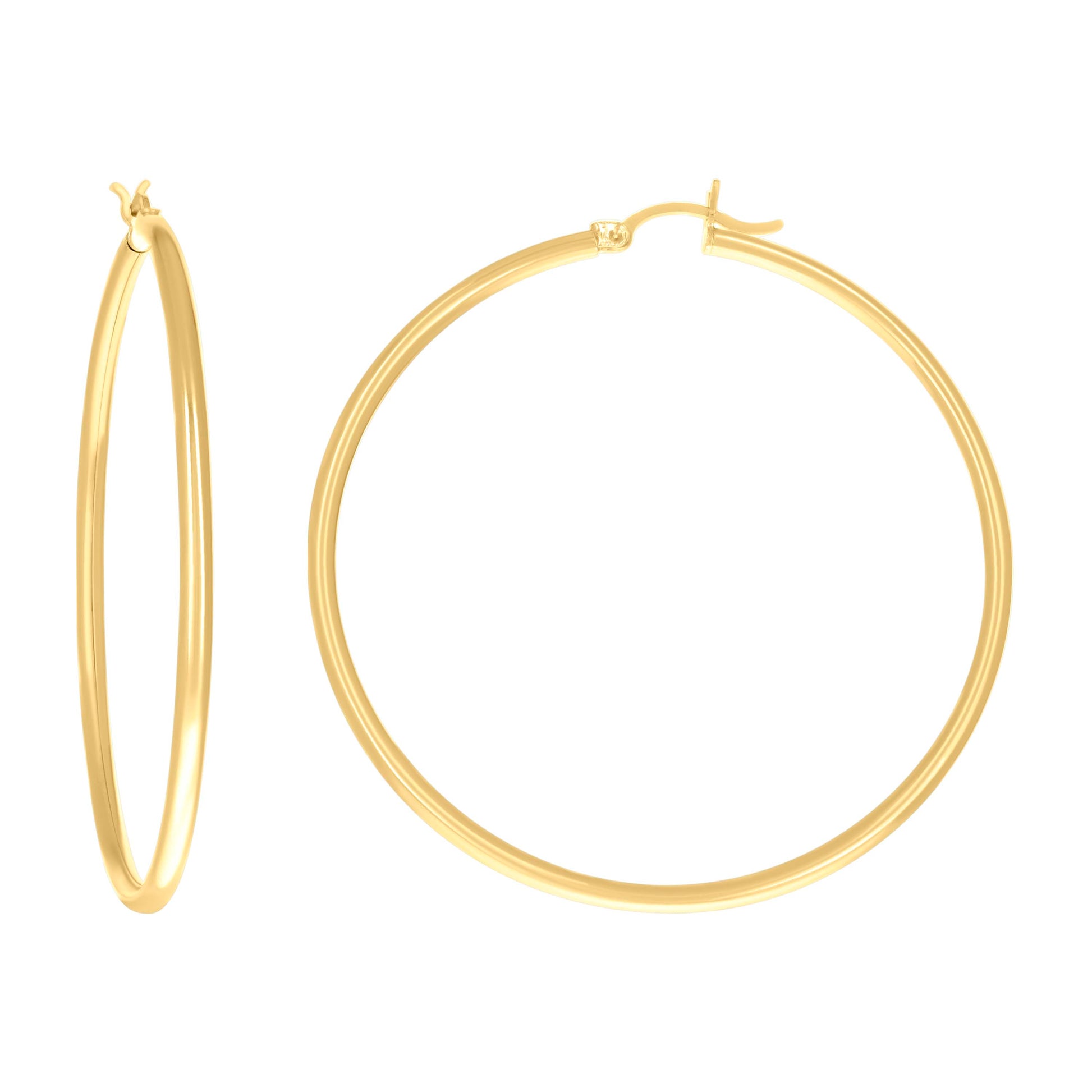 14Kt Yellow Gold Womens Plain Round Tube Hoop Earrings 2mm-50