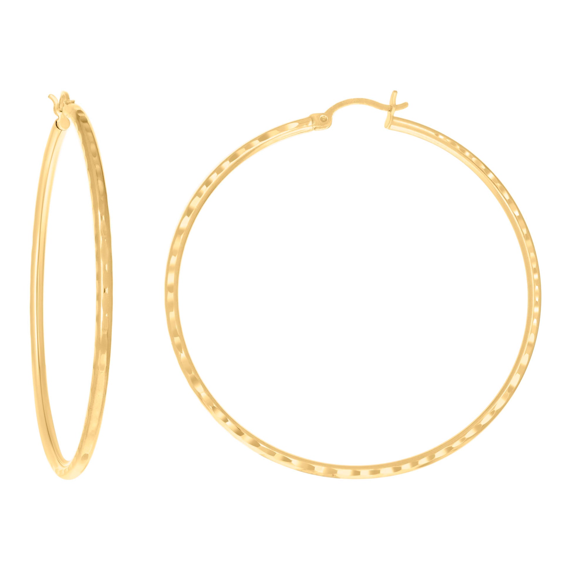 14Kt Gold D/C Hoop Earrings 2mm-50