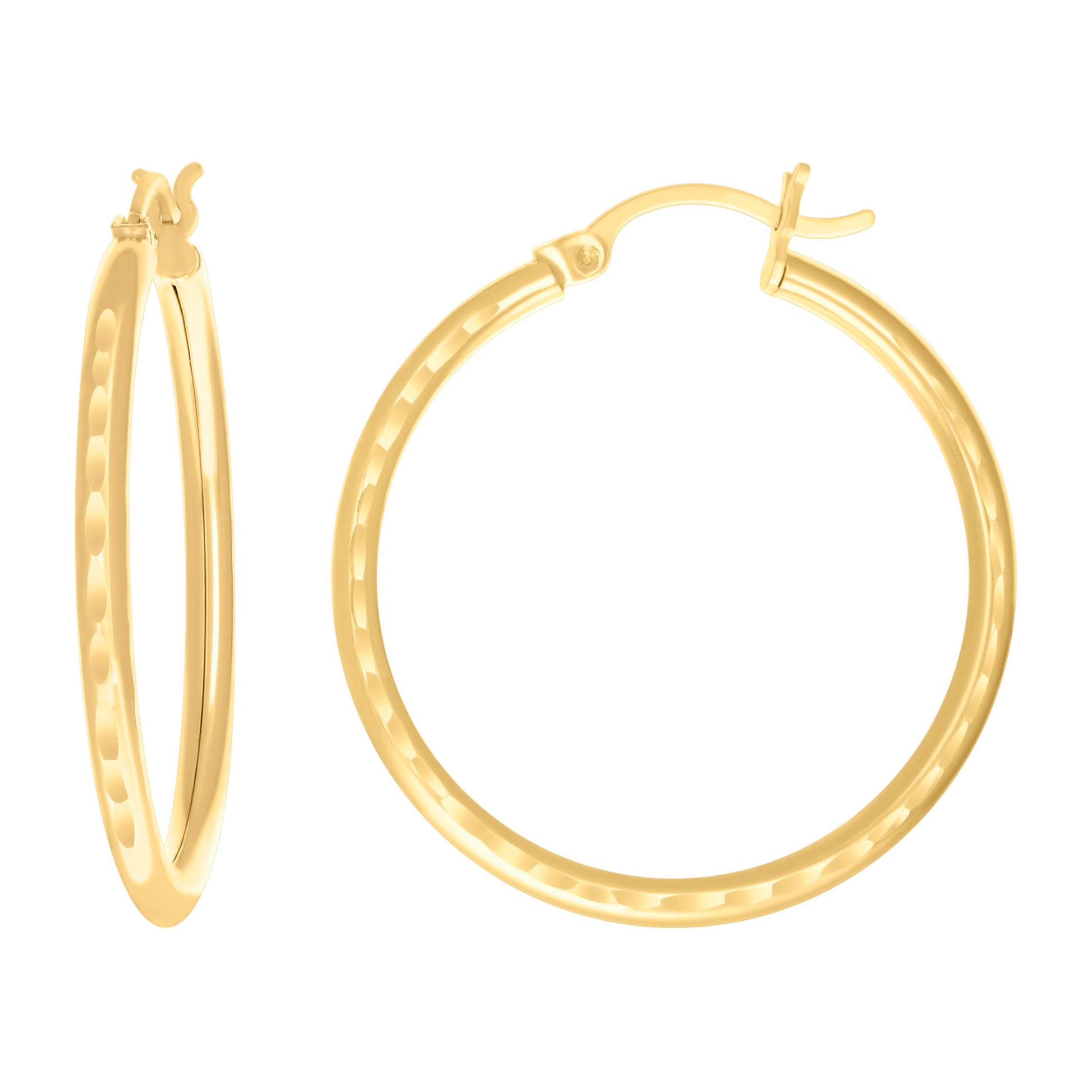 14Kt Gold D/C Hoop Earrings 2mm-35