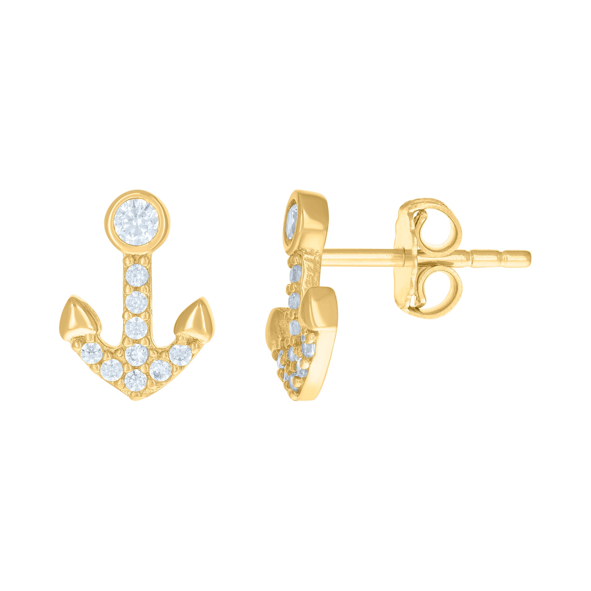 14kt Yellow Gold Womens Cubic-Zirconia Anchor Ocean Stud Earrings