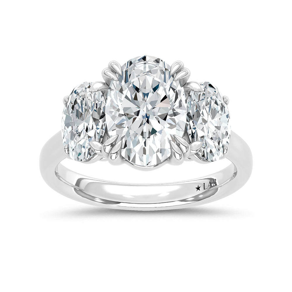 14K White Gold Lab Grown Diamond 5 Ct.Tw. Oval Shape Three Stone Engagement Ring