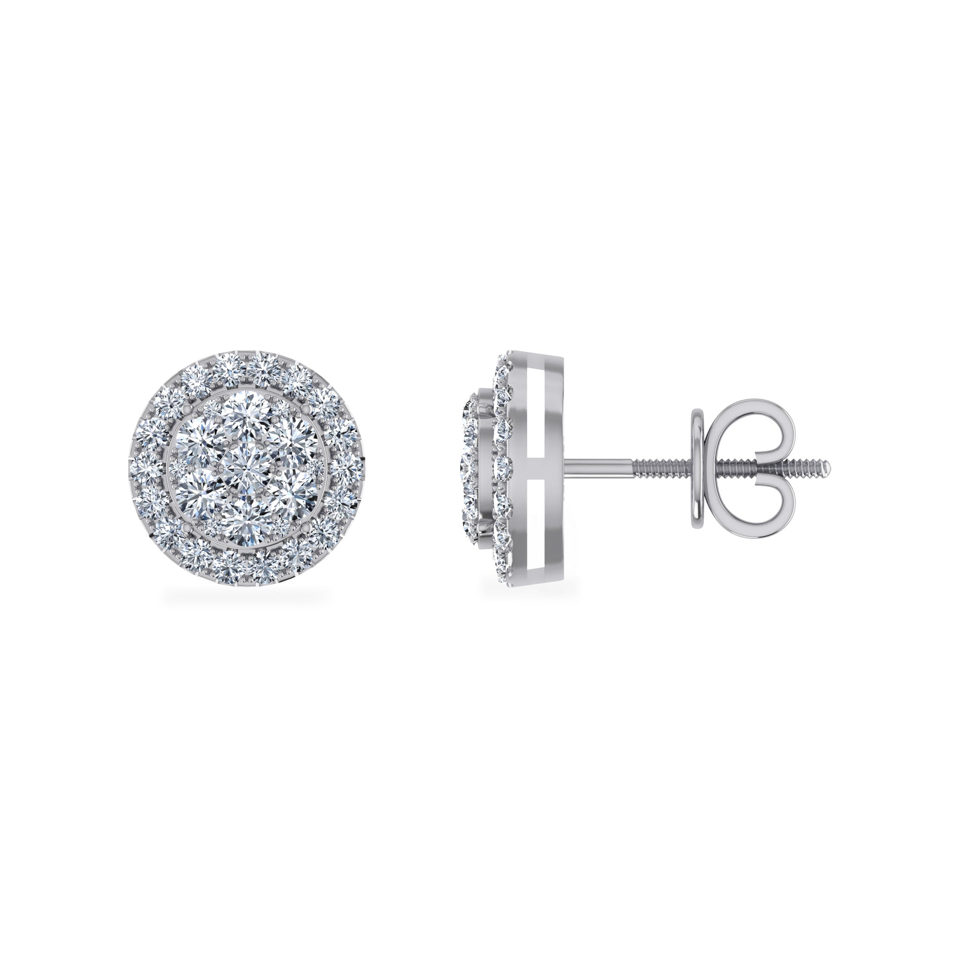 14K White Gold Moissanite Round Shape Womens Stud Earrings 7/8 Cttw