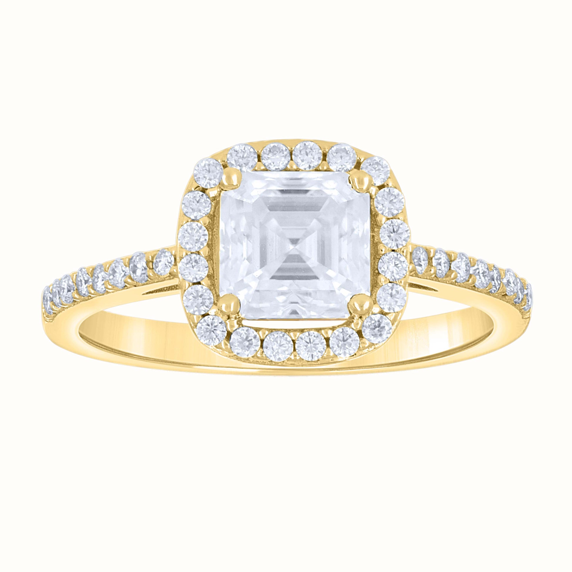 14kt Yellow Gold Womens Princess-cut Round Moissanite Fashion Engagement Ring Size 7