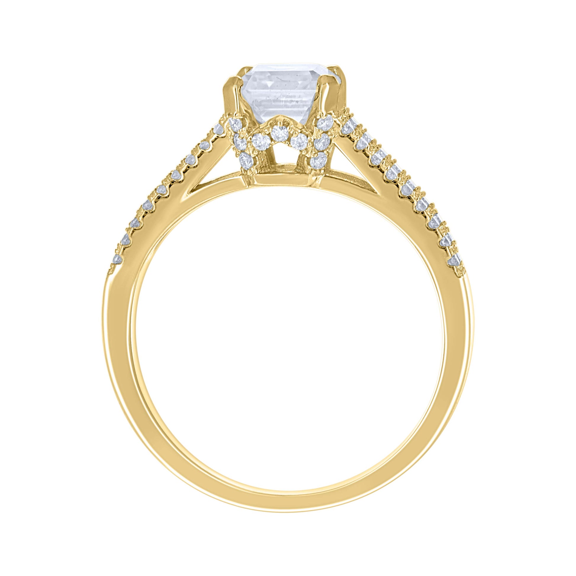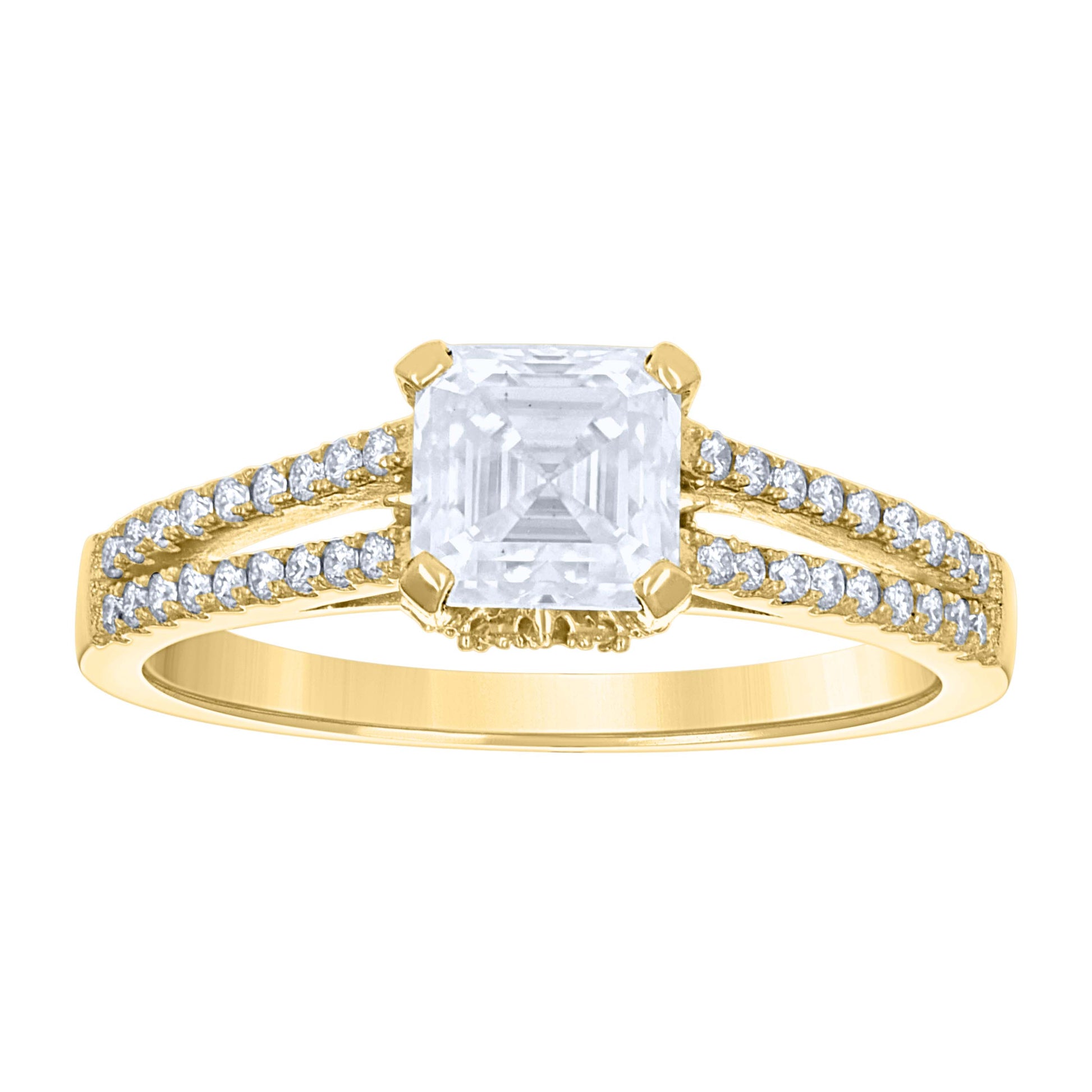 14kt Yellow Gold Womens Cushion-cut Round Moissanite Fashion Engagement Ring Size 7