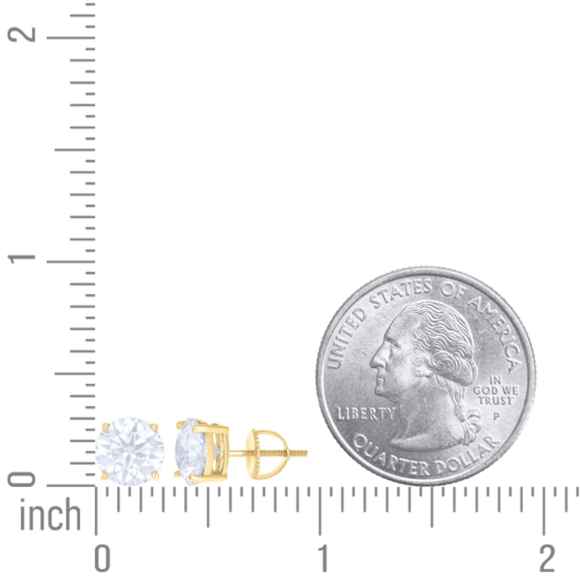 14Kt Yellow Gold 8mm Moissanite Screw Back Earrings