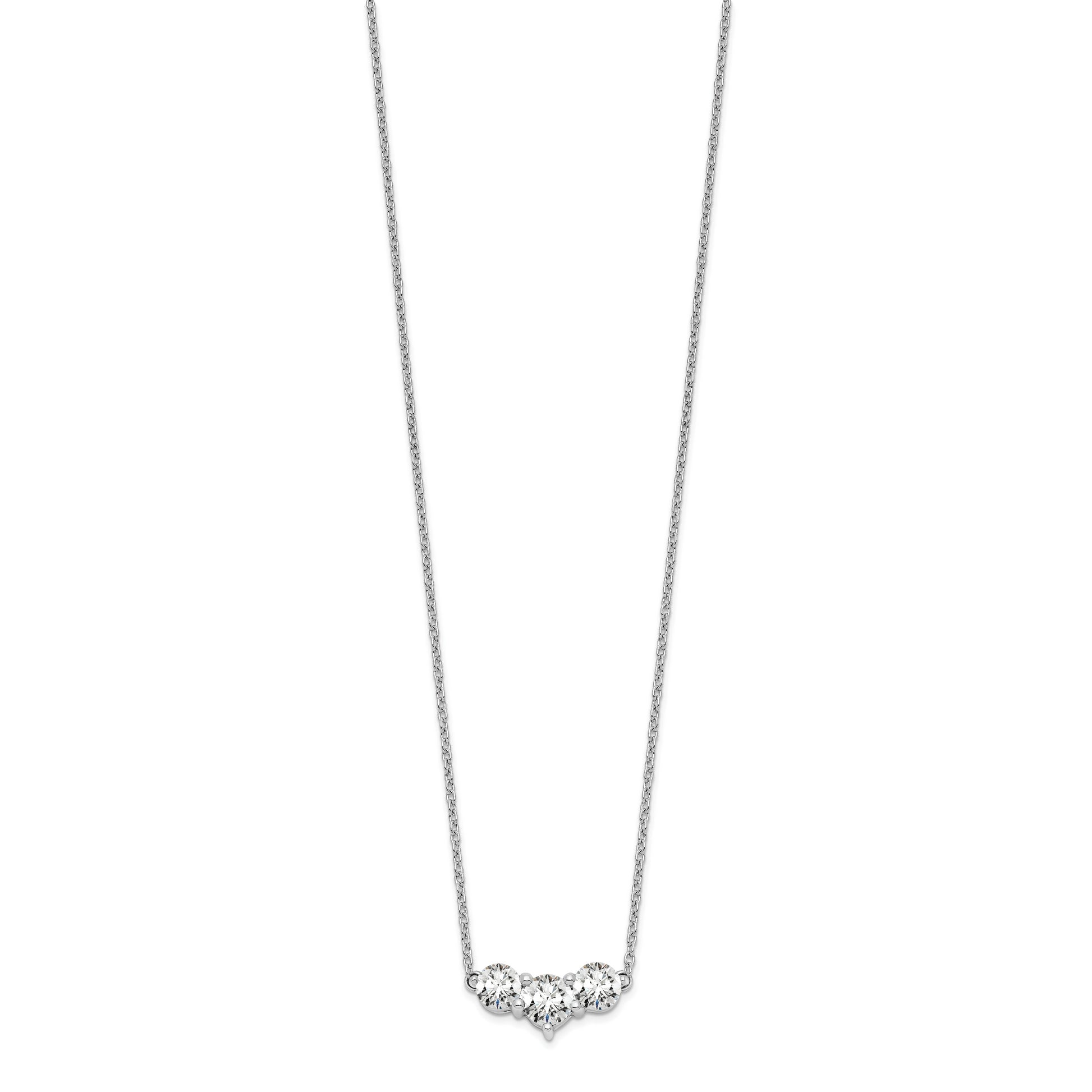 14k White Gold 1 carat Lab Grown Diamond VS/SI+ G+ Round Complete 18 inch Three Stone Necklace