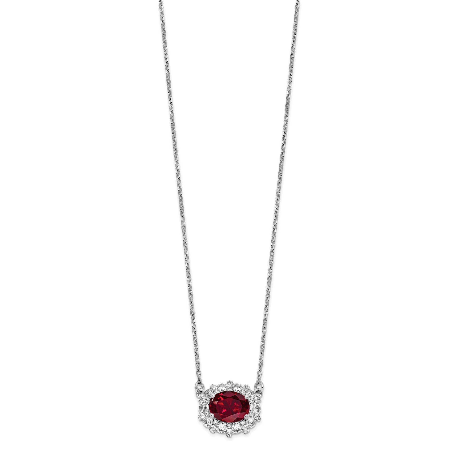 14k White Gold 1 carat Lab Grown Diamond VS/SI+ G+ and Created Ruby Complete 18 inch Necklace