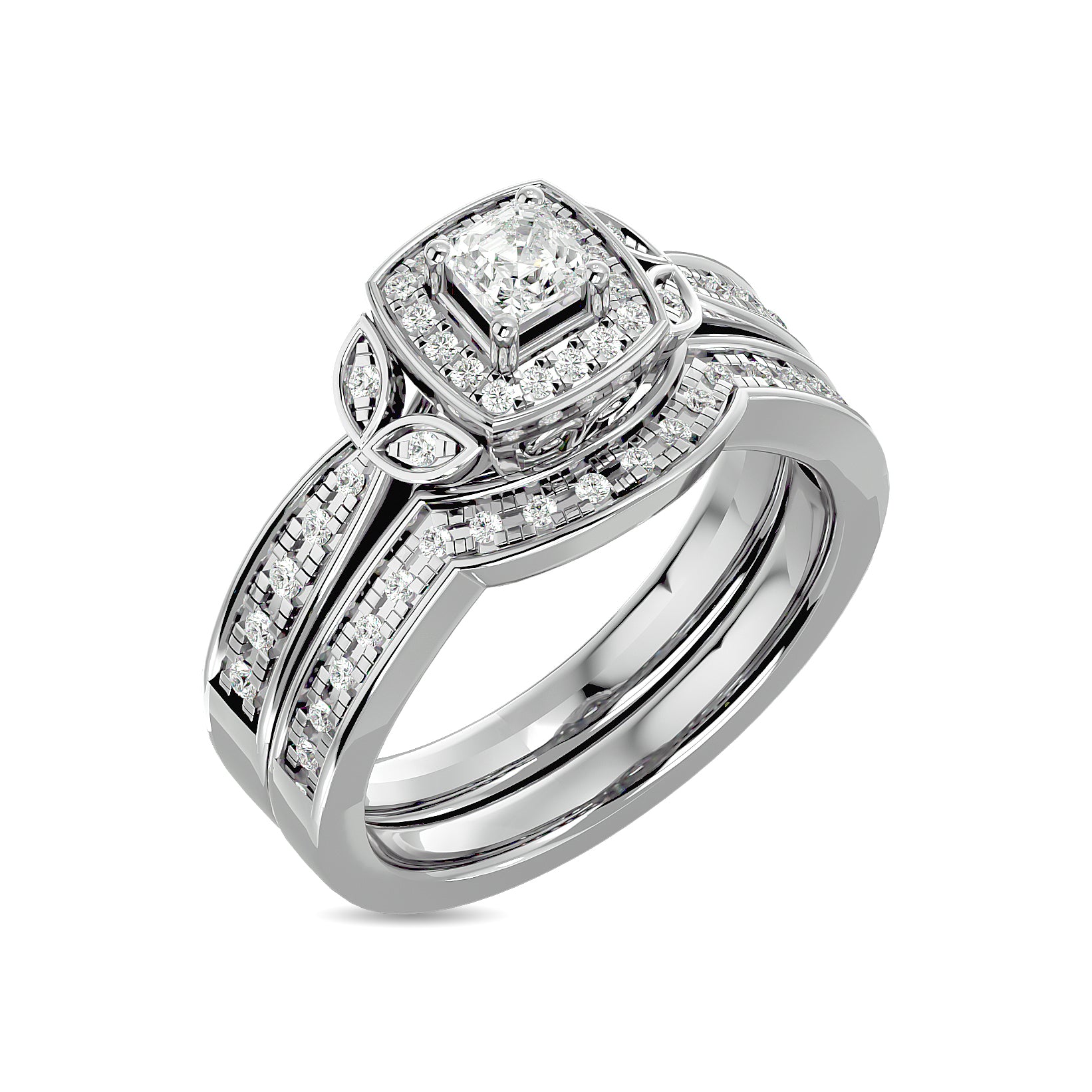 Diamond 1/2 Ct.Tw. Round and Princess Bridal Ring in 14K White Gold