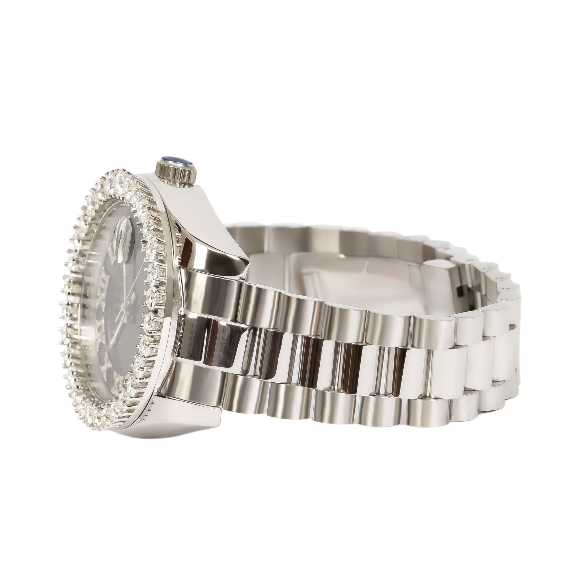 Moissanite Stainless Steel Blue Dial Mens White Steel Band Watch