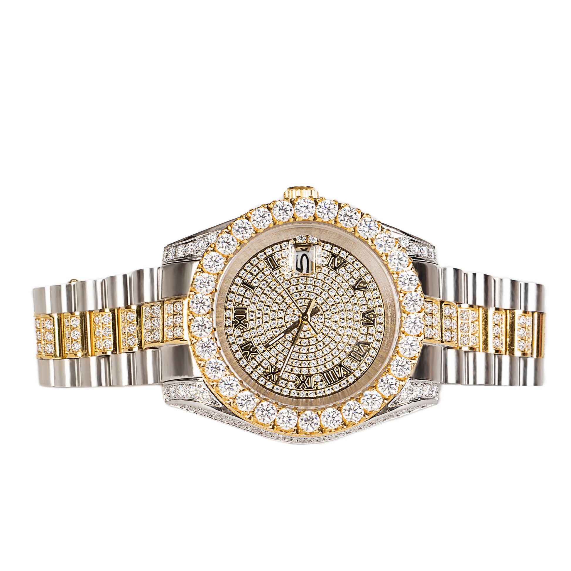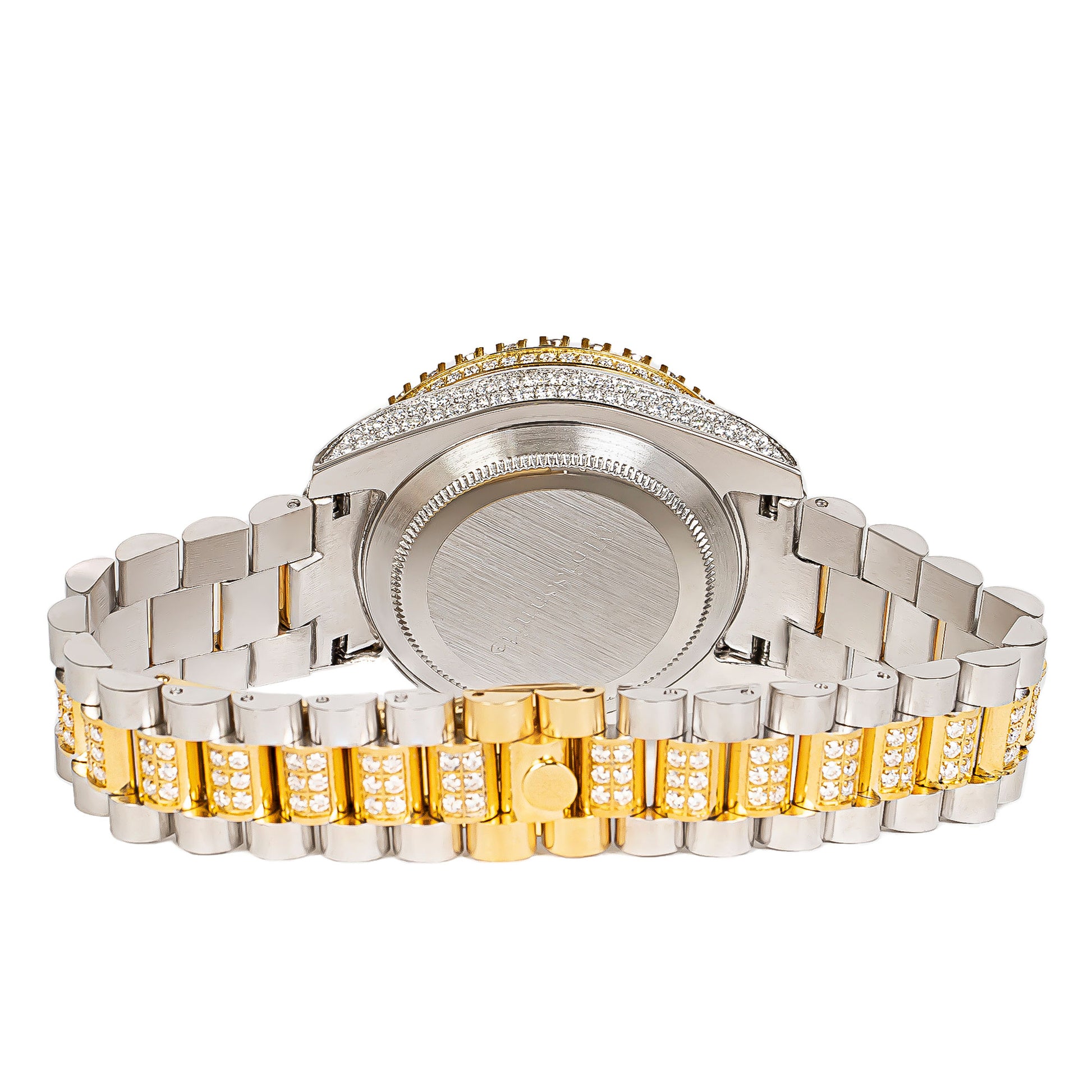 Moissanite Stainless Steel Mens Yellow White Two Tone Steel Band Watch