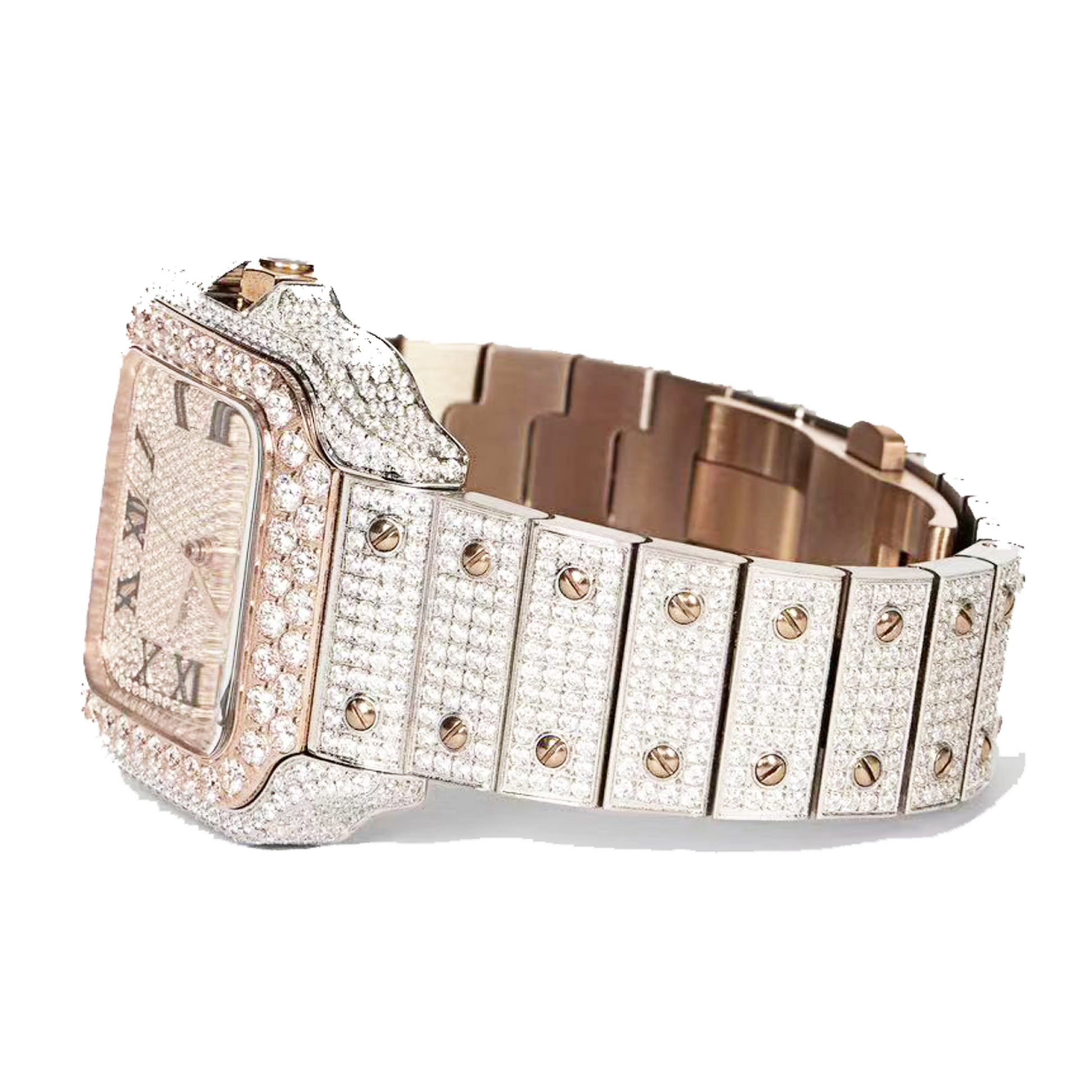 Moissanite Stainless Steel Rose Two Tone Band Mens Watch 20.20 Cttw