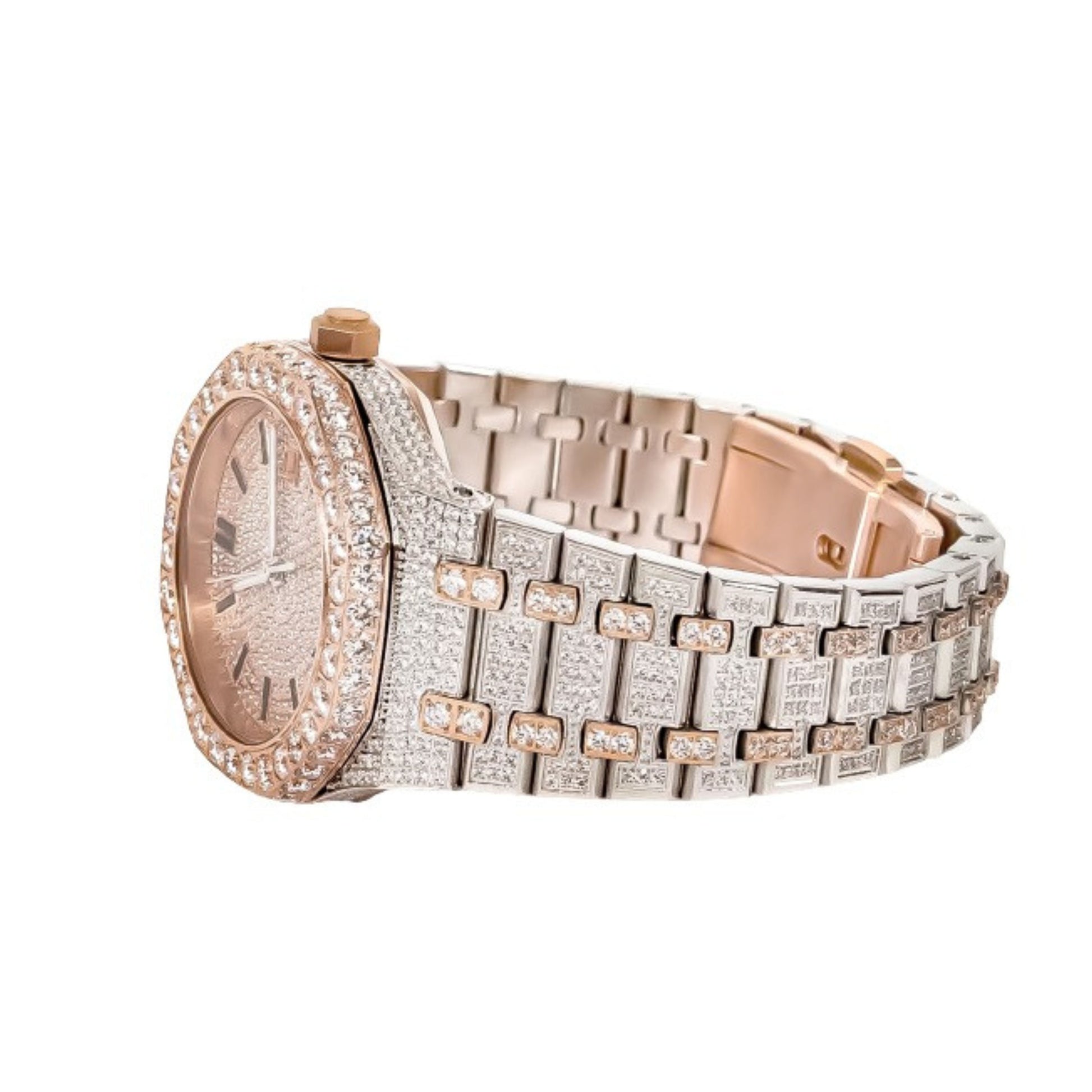 Moissanite Stainless Steel Watch Rose Two Tone Steel Band 22-1/3 Cttw