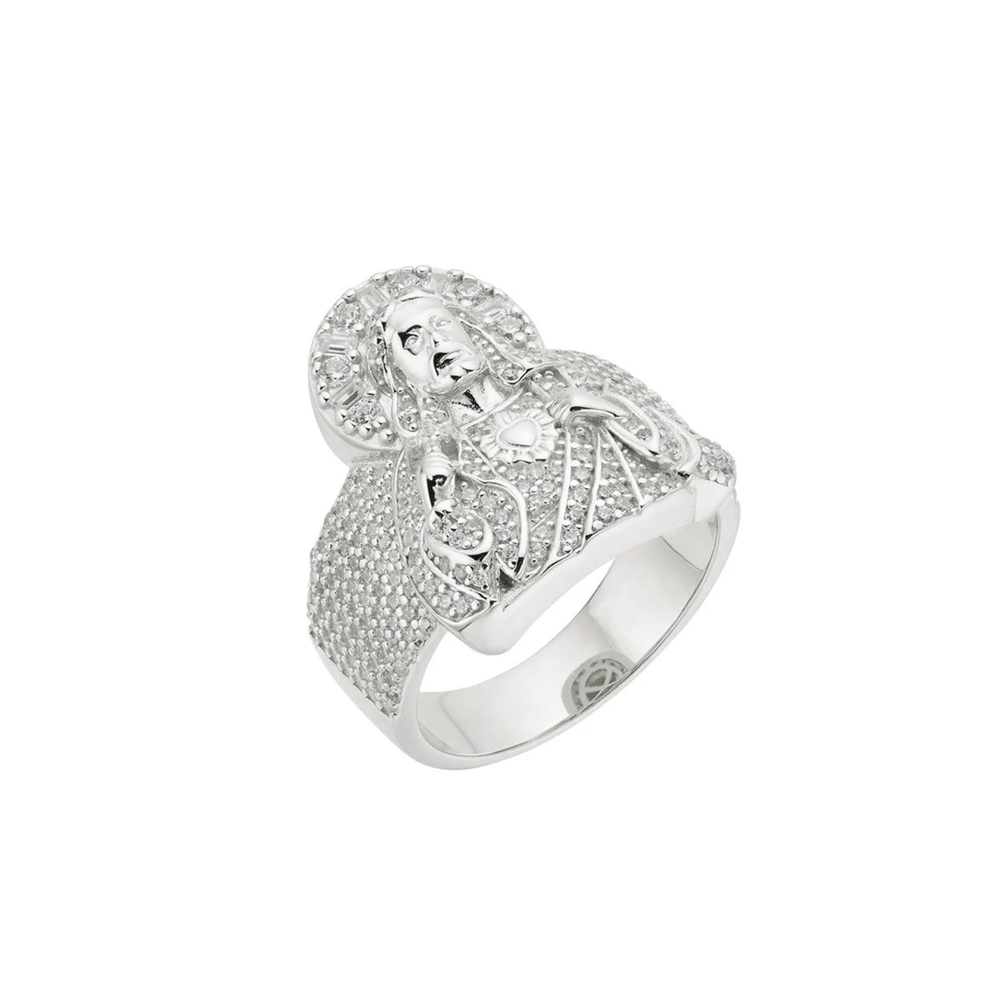 Sterling Silver Round Baguette Moissanite SZ 10 Jesus Religious Mens Ring RP 2 Cttw