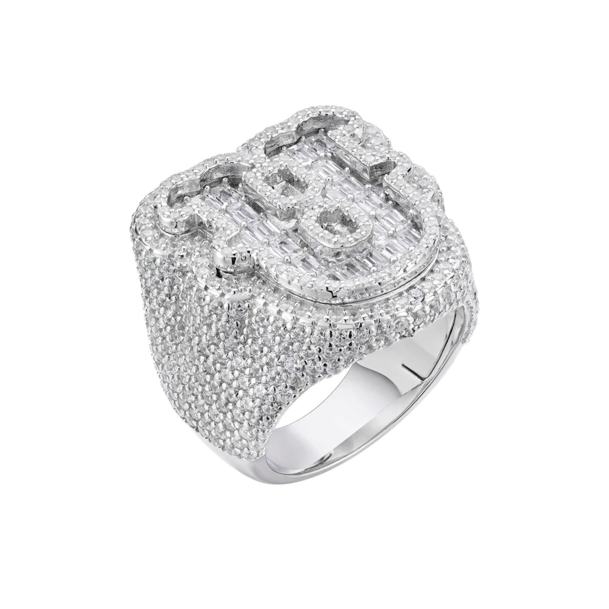 Sterling Silver Round Baugette Moissanite Albhabet U letter Initial SZ 10 Mens Ring RP 6-1/2 Cttw