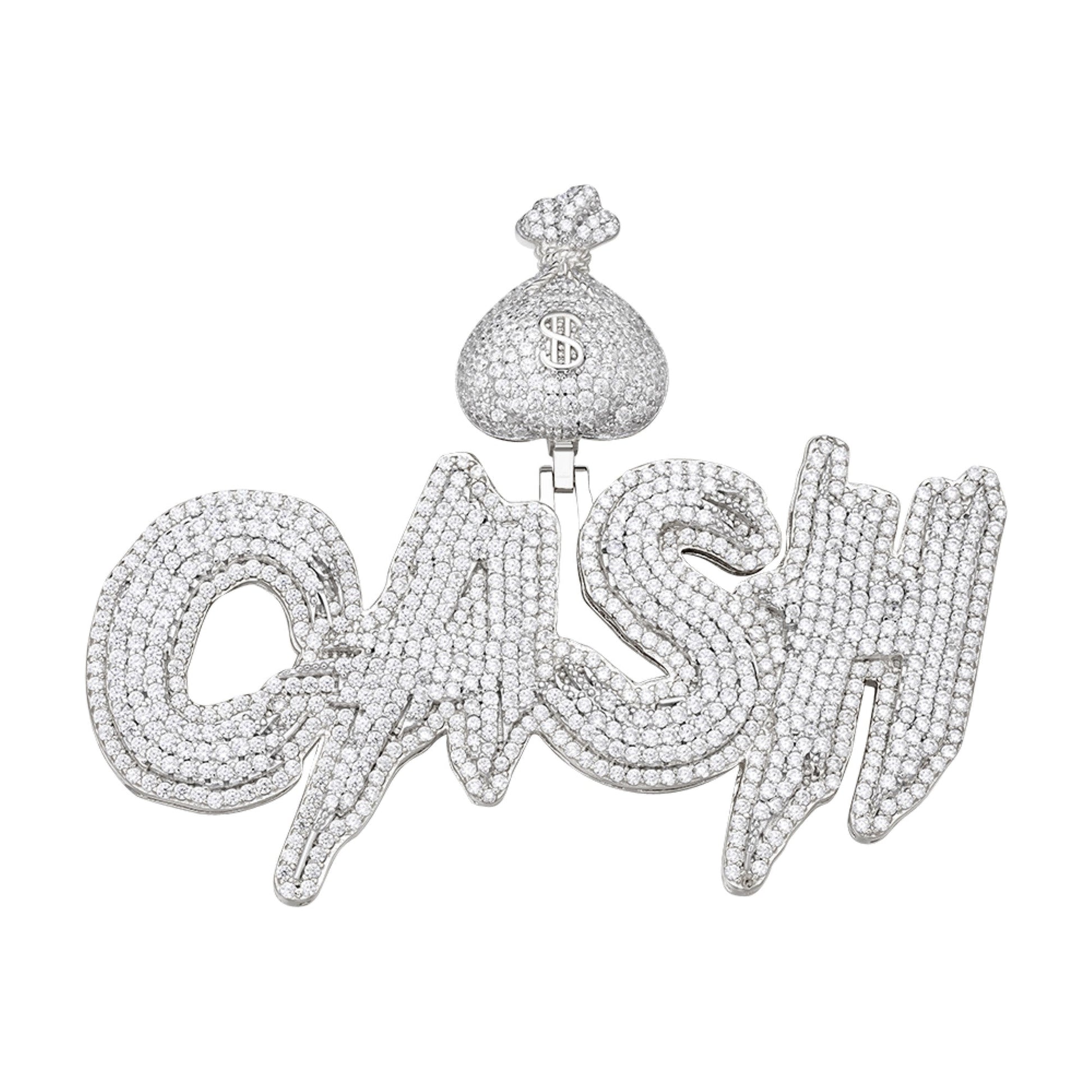 Sterling Silver Round Moissanite CASH Word Designer Pendant RP 7-1/2 Cttw