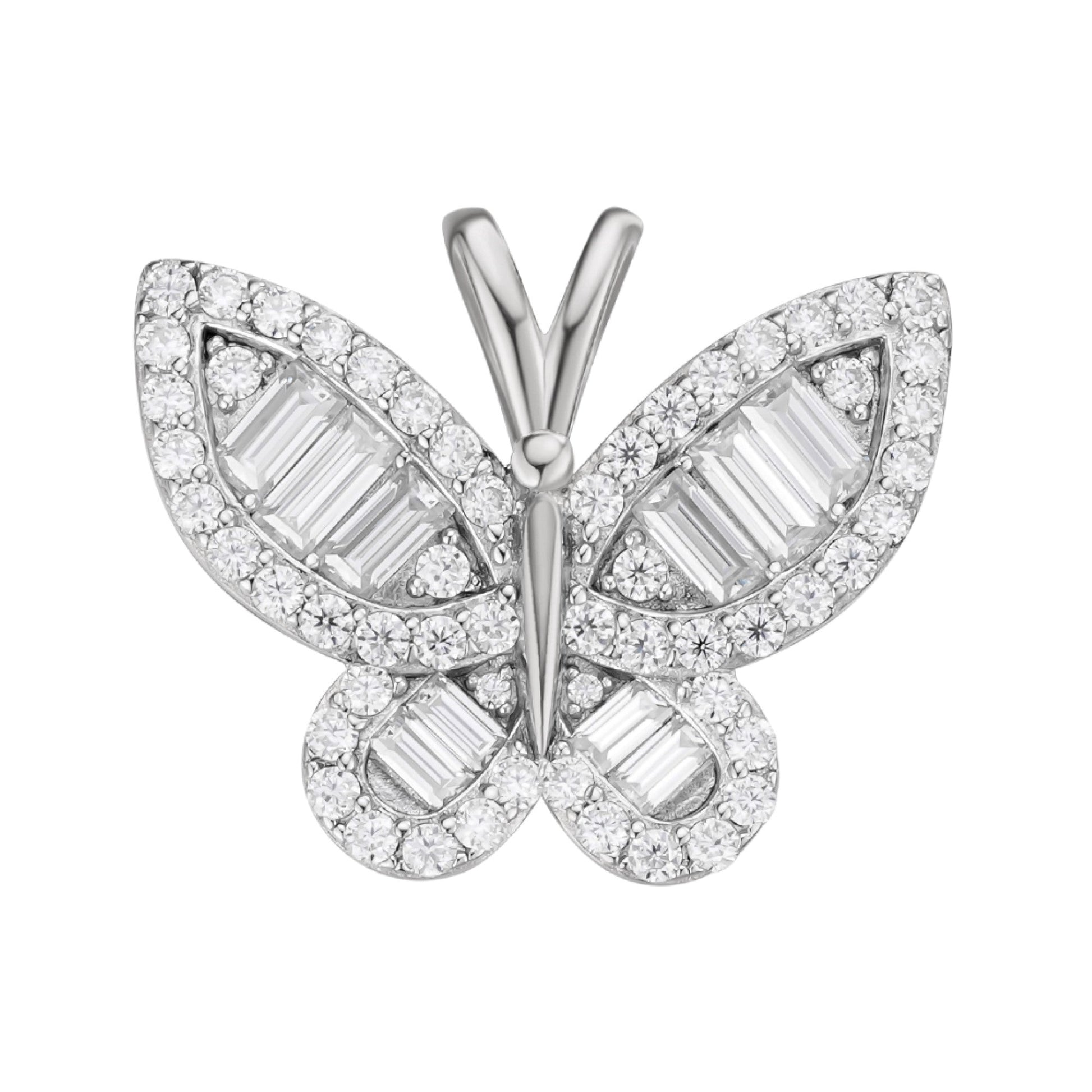Sterling Silver Round Baguette Moissanite Butterfly Animal Pendant RP 1-7/8 Cttw