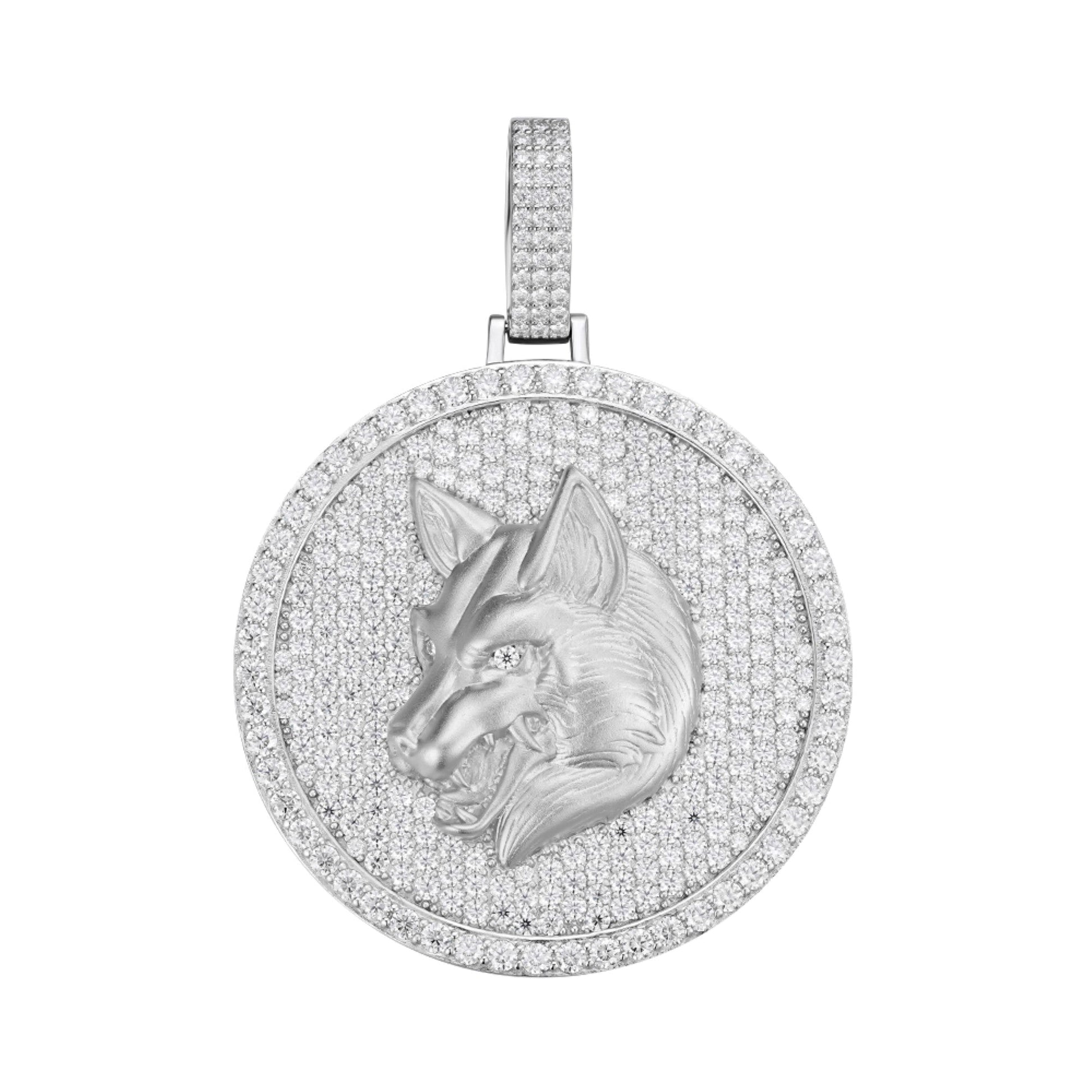 Sterling Silver Round Moissanite Wolf Animal Pendant RP 10-7/8 Cttw
