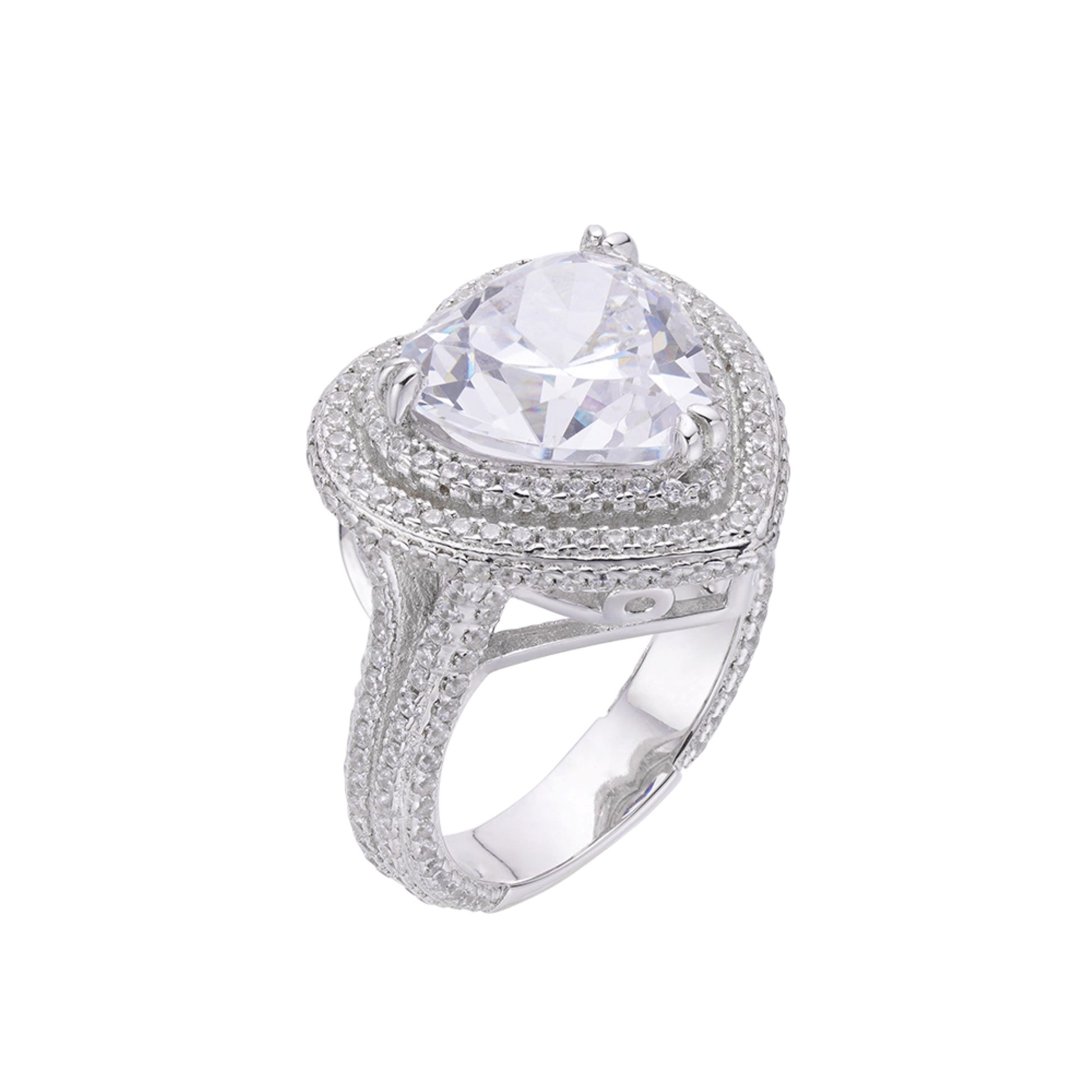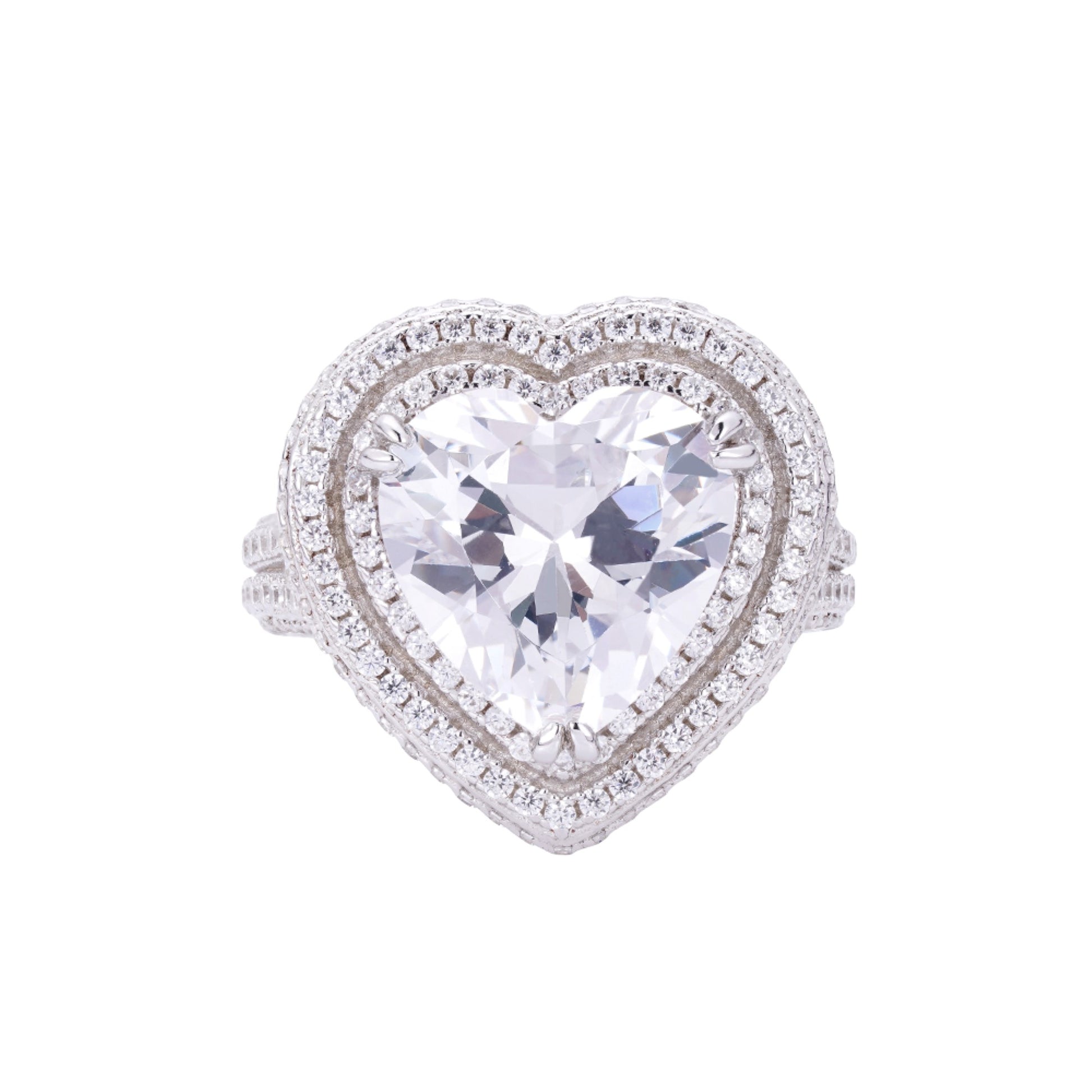 S.Silver Round 1.49 Cttw and Heart 6.06 Cttw Moissanite Halo Designer Sz 7 Womens Ring RP