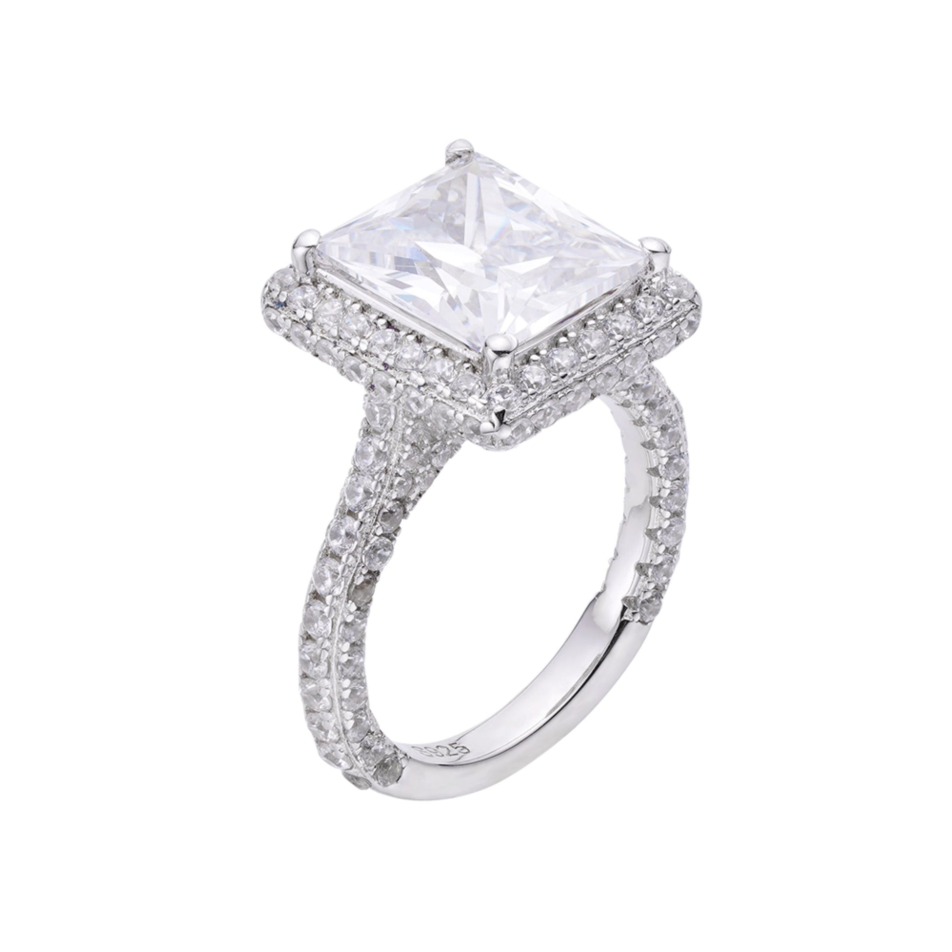 S.Silver Round 1.74 Cttw and Baguette 5.10 Cttw Moissanite Halo Designer Sz 7 Womens Ring RP