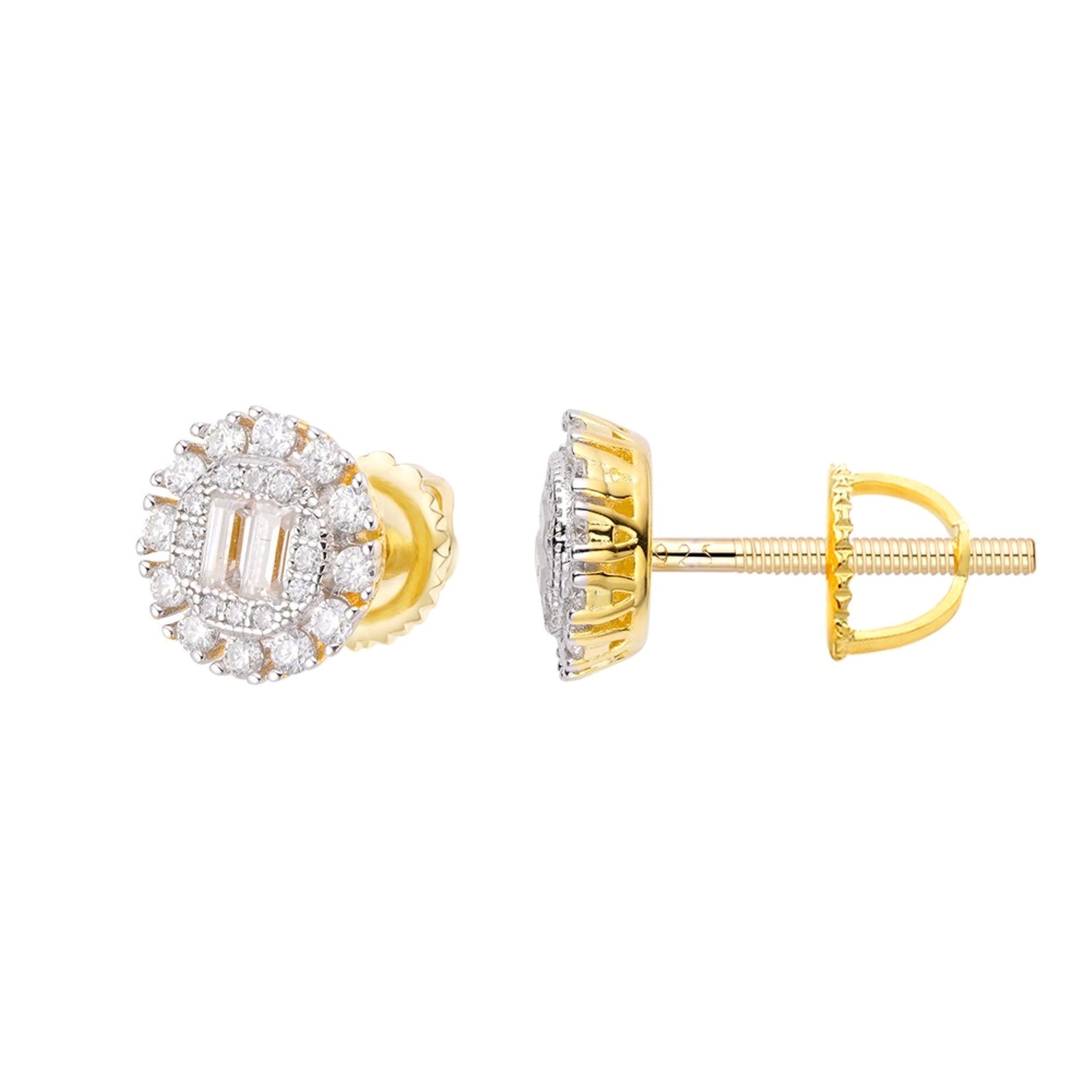 S.Silver Round Baguette Moissanite Designer Stud Earrings RP+GP 5/8 Cttw