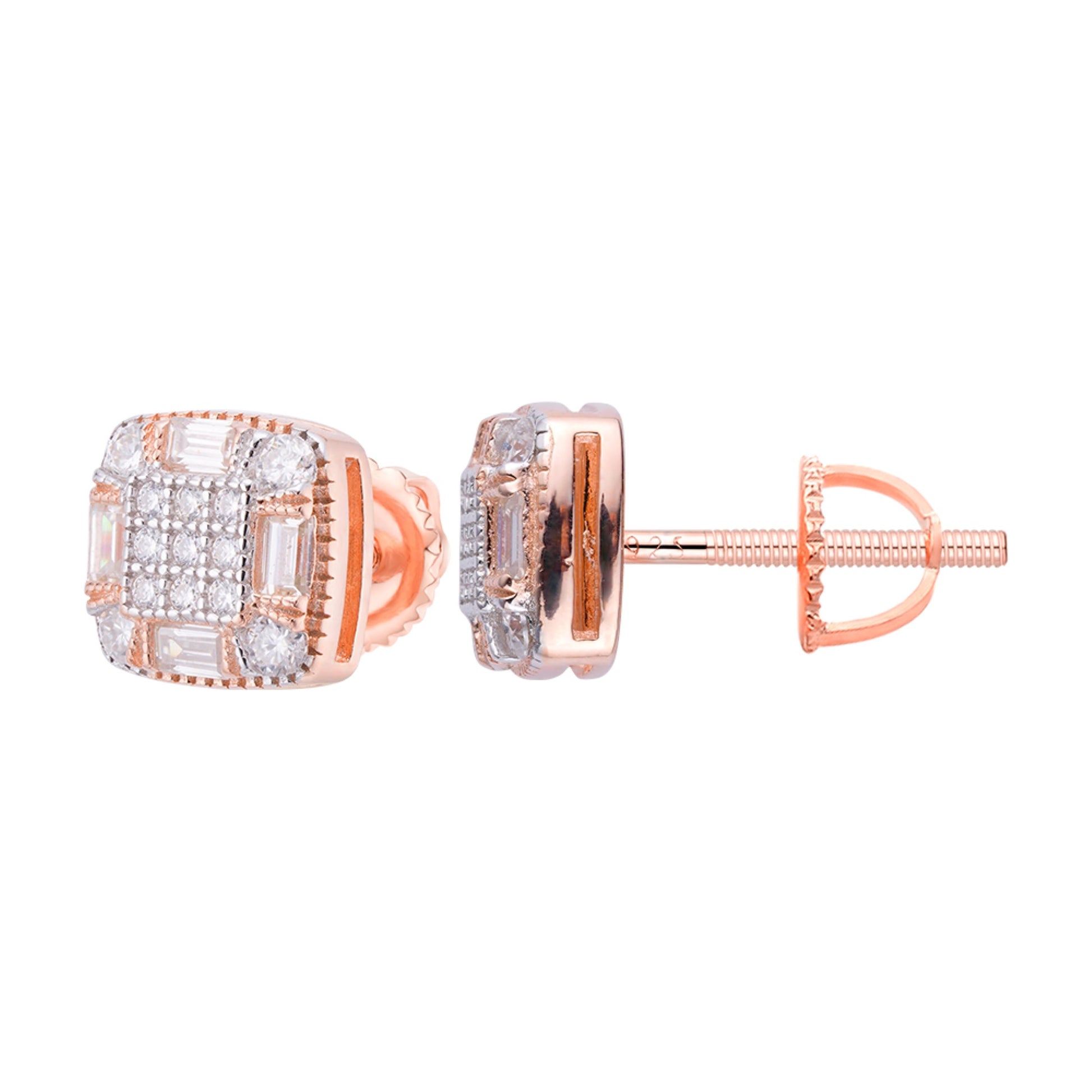 S.Silver Round Baguette Moissanite Square Shape Stud Earrings RP+PP 3/4 Cttw