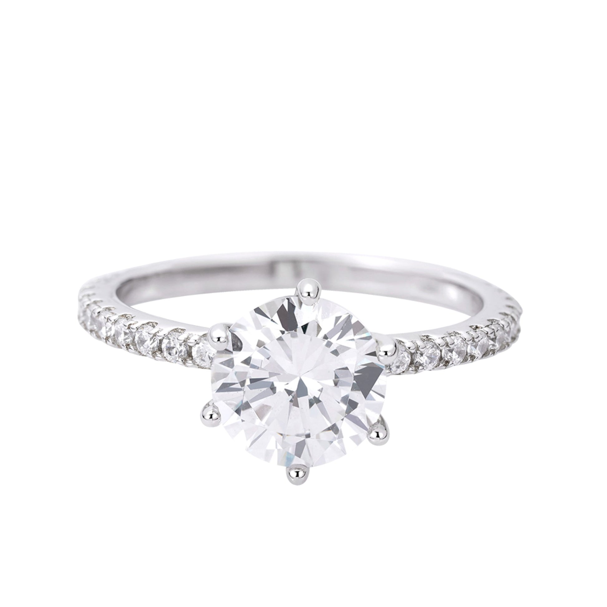 S.Silver Round Big Stone 1.20 Cttw and Small Stone 0.49 Cttw Moissanite Solitaire Designer Sz 7 Womens Ring RP