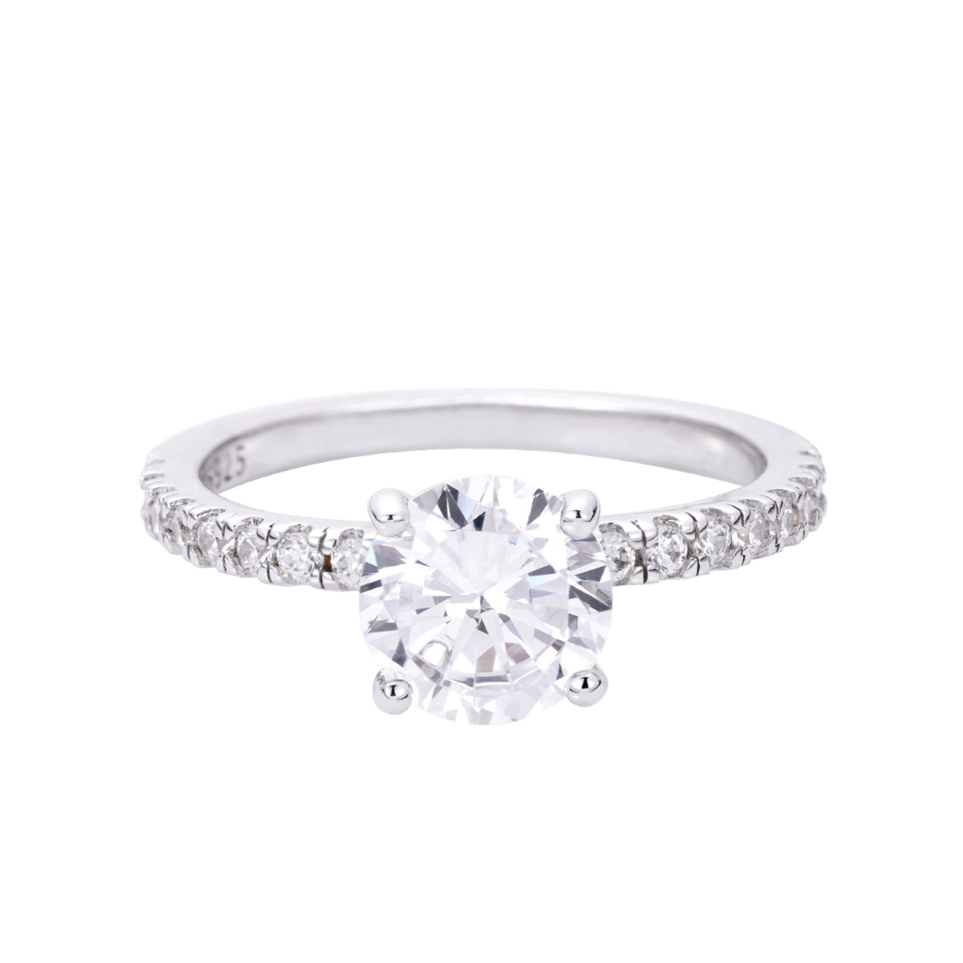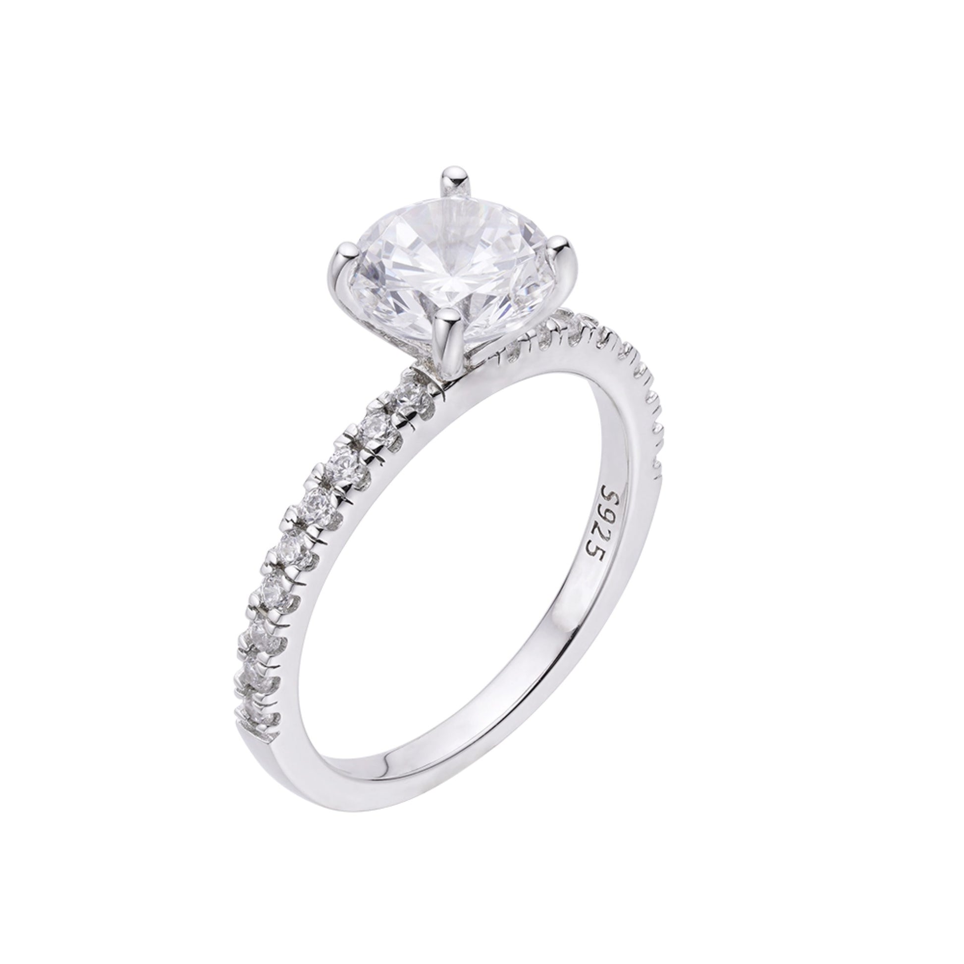 S.Silver Round Center Stone 2 Cttw and Side Stone 0.52 Cttw Moissanite Solitaire Designer Sz 7 Womens Ring RP