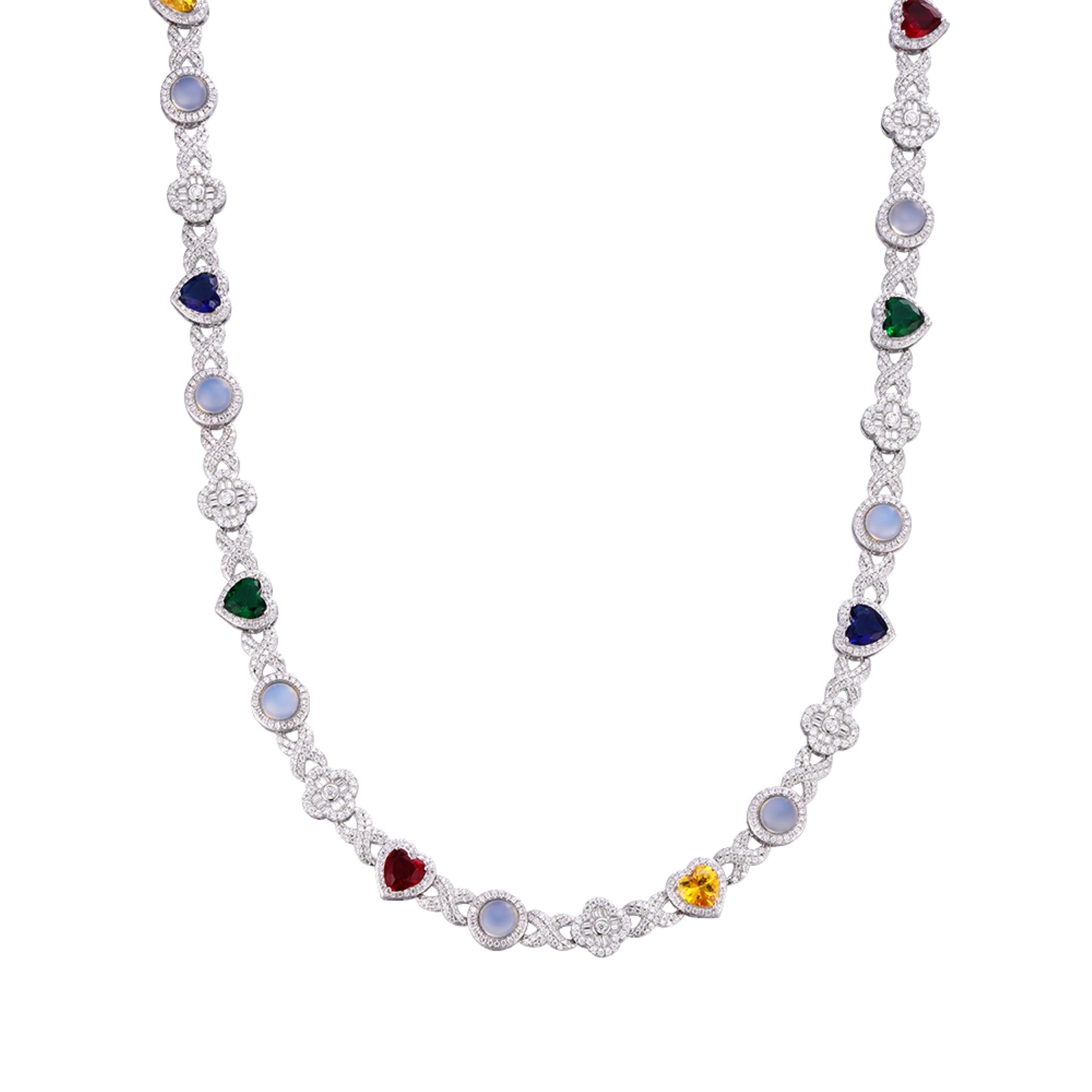 S.Silver Round Moissanite Flower Infinity with Color Stone Designer 22 Inch Necklace RP 9-7/8 Cttw
