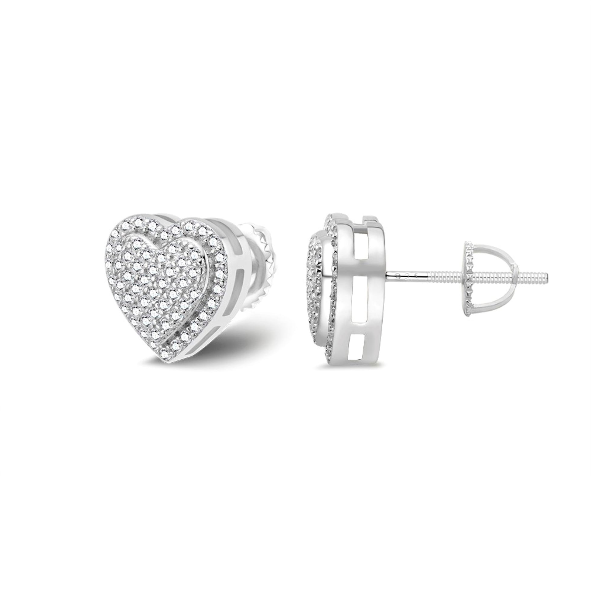 S.Silver Round Moissanite Heart Shape Designer Stud Earrings RP 5/8 Cttw