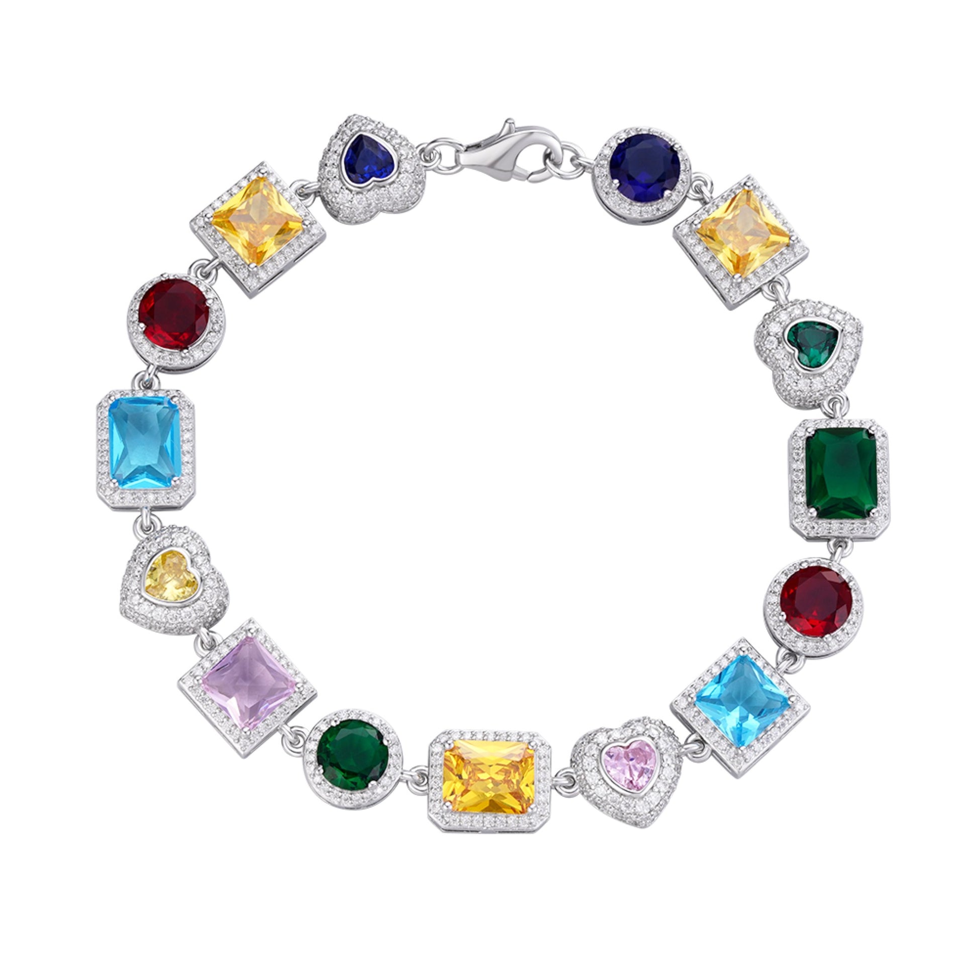 S.Silver Round Moissanite Heart with Color Stone Designer 8 Inch Bracelet RP 3-5/8 Cttw