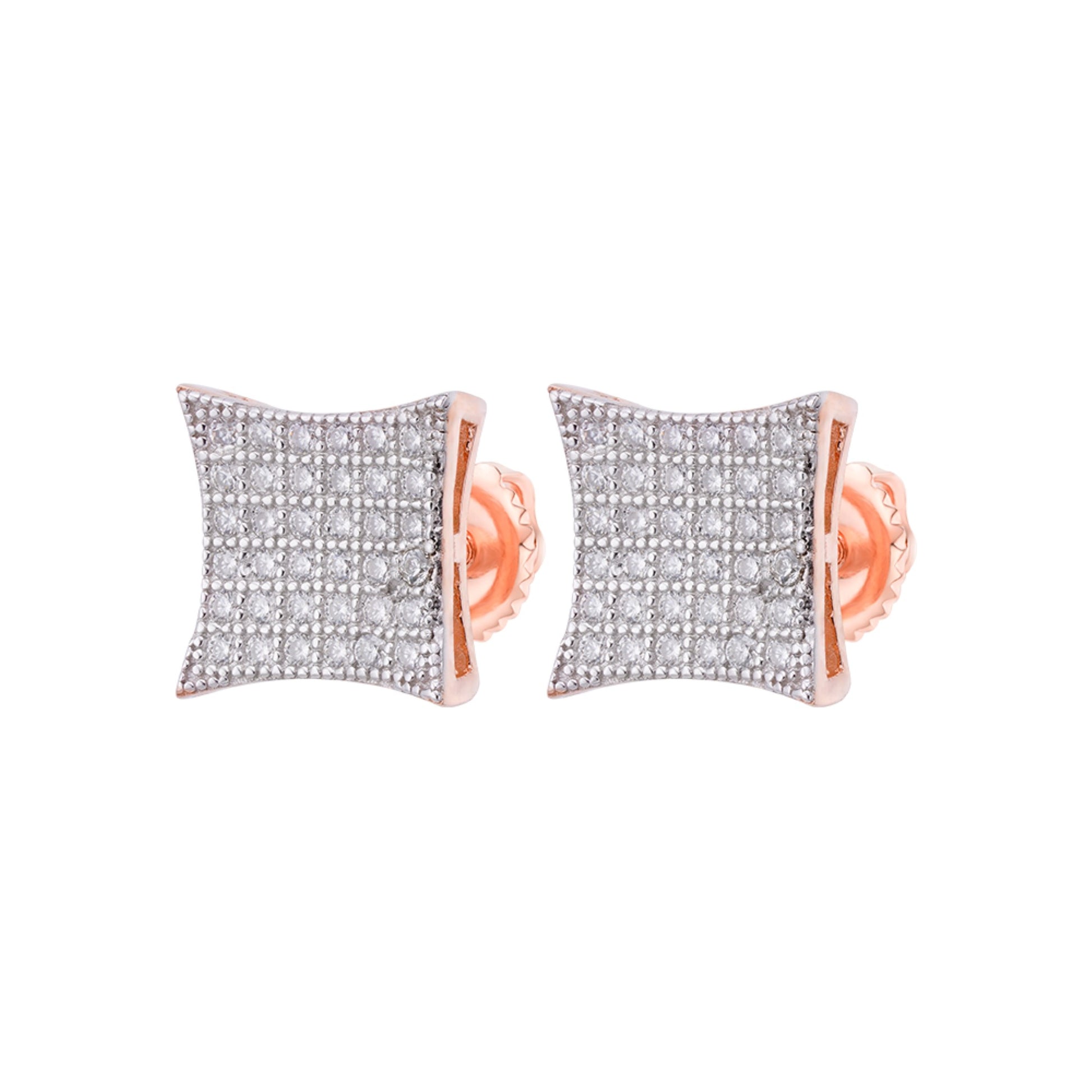 S.Silver Round Moissanite Square Shape Cluster Stud Earrings RP+PP 1/2 Cttw