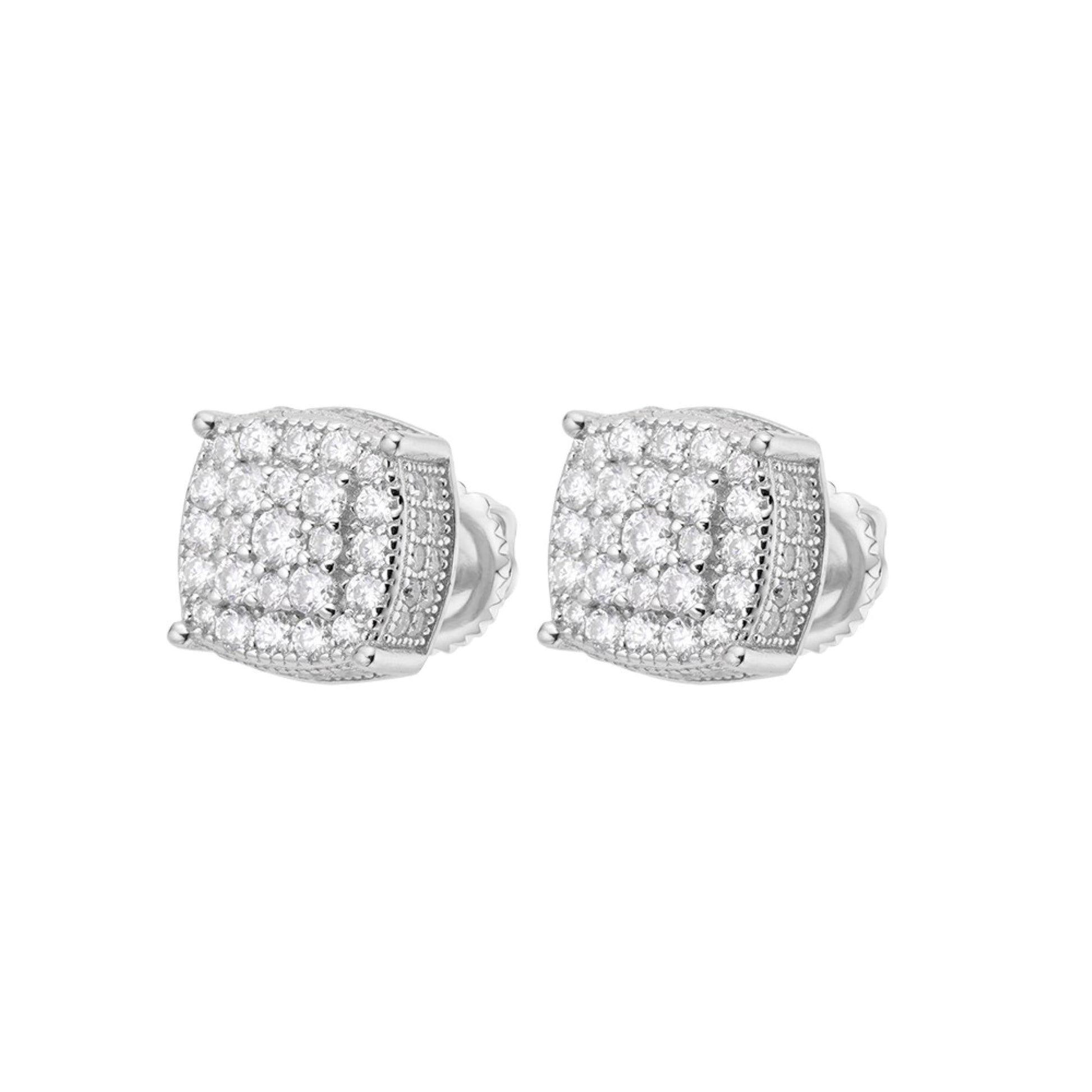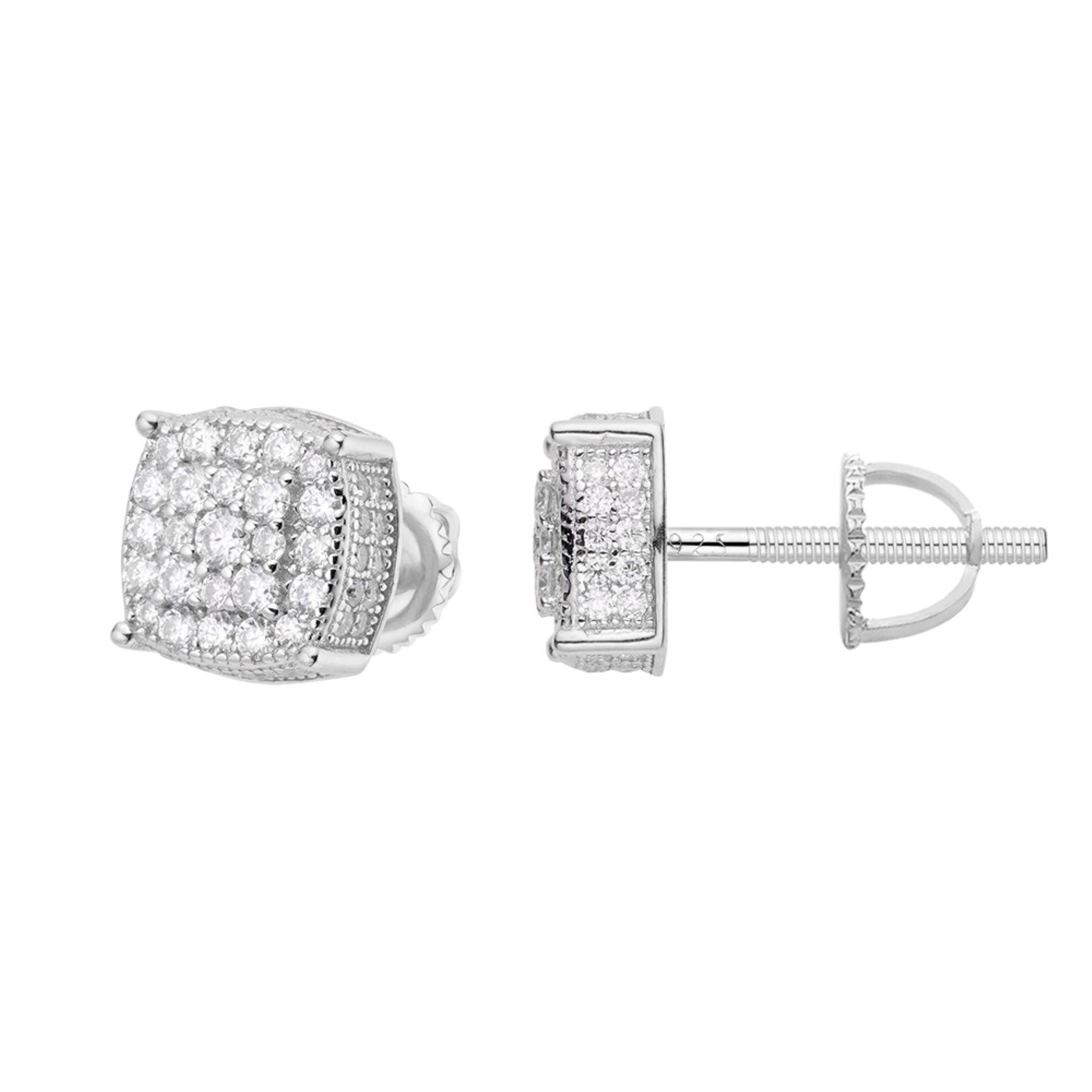 S.Silver Round Moissanite Square Shape Stud Earrings RP 7/8 Cttw
