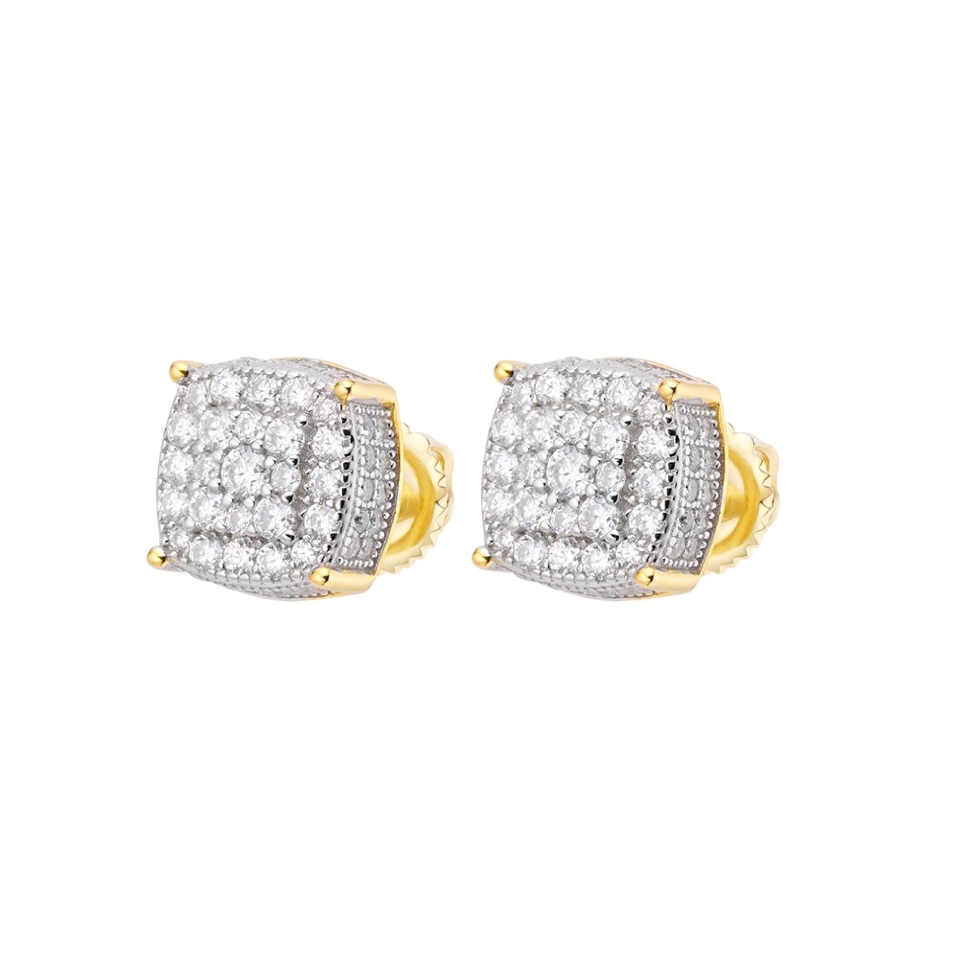 S.Silver Round Moissanite Square Shape Stud Earrings RP+GP 7/8 Cttw