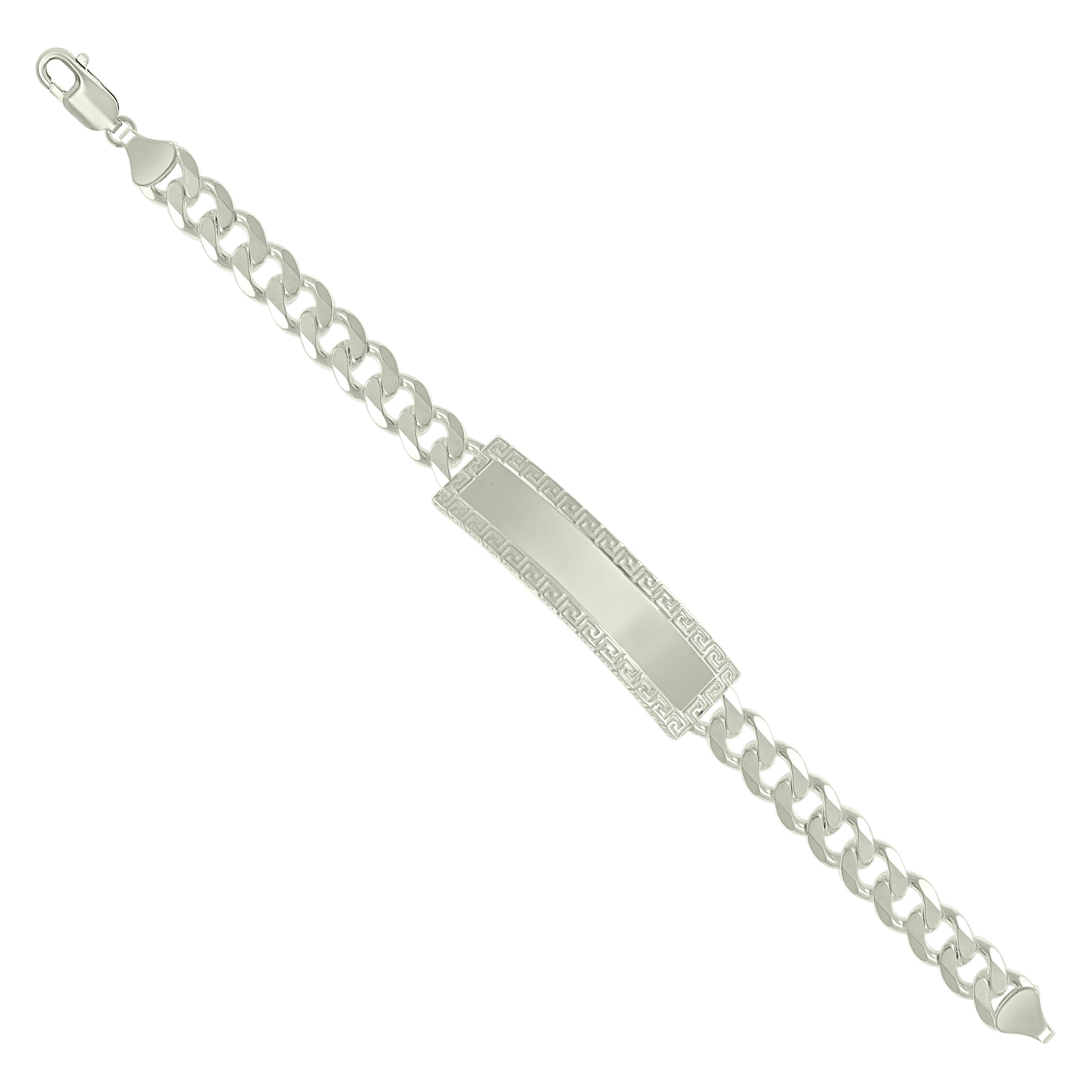 925 Sterling Silver Mens Cuban Link Greek Key ID Bracelet Size 8 Inches