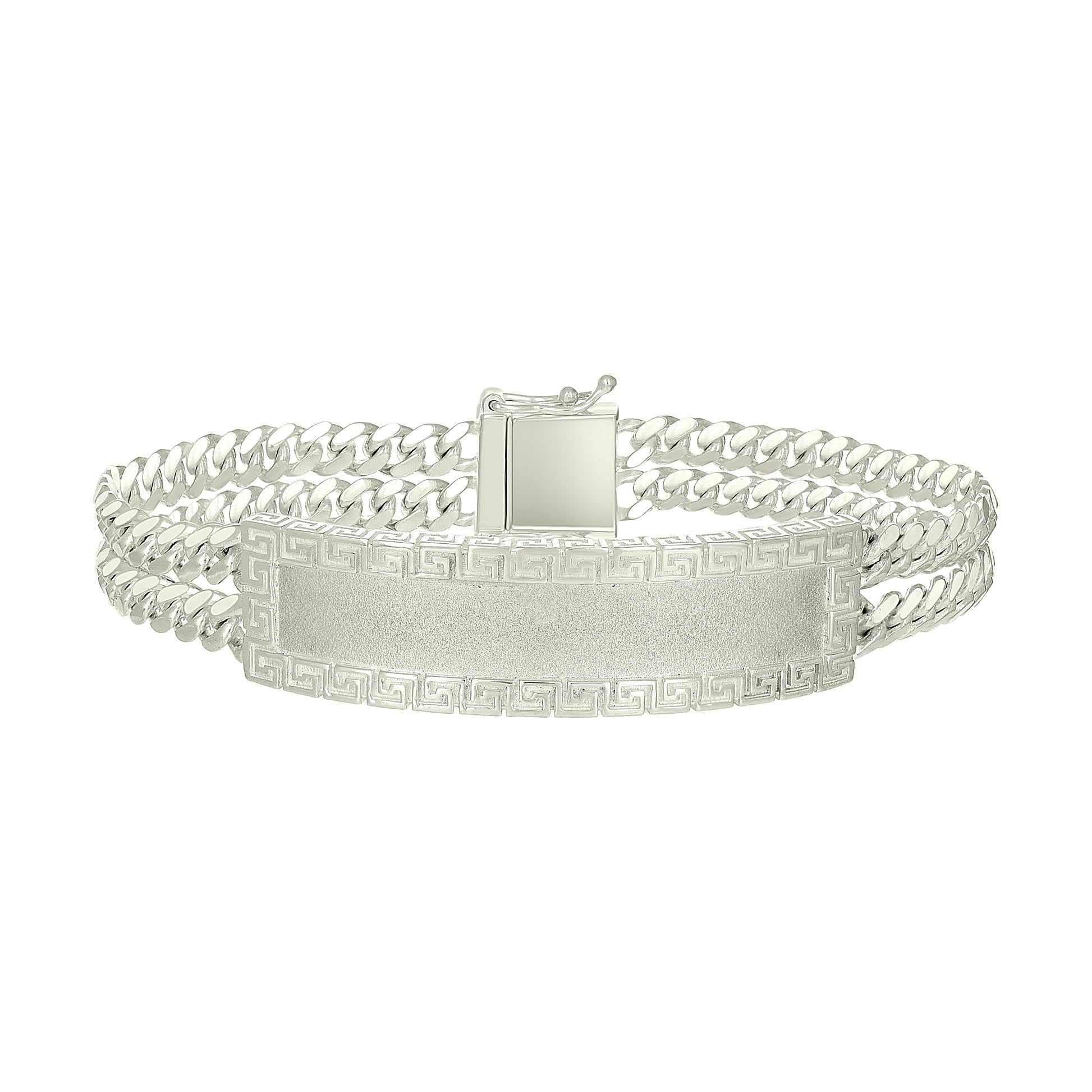 925 Sterling Silver Mens Cuban Link Greek Key ID Bracelet Size 8 Inches