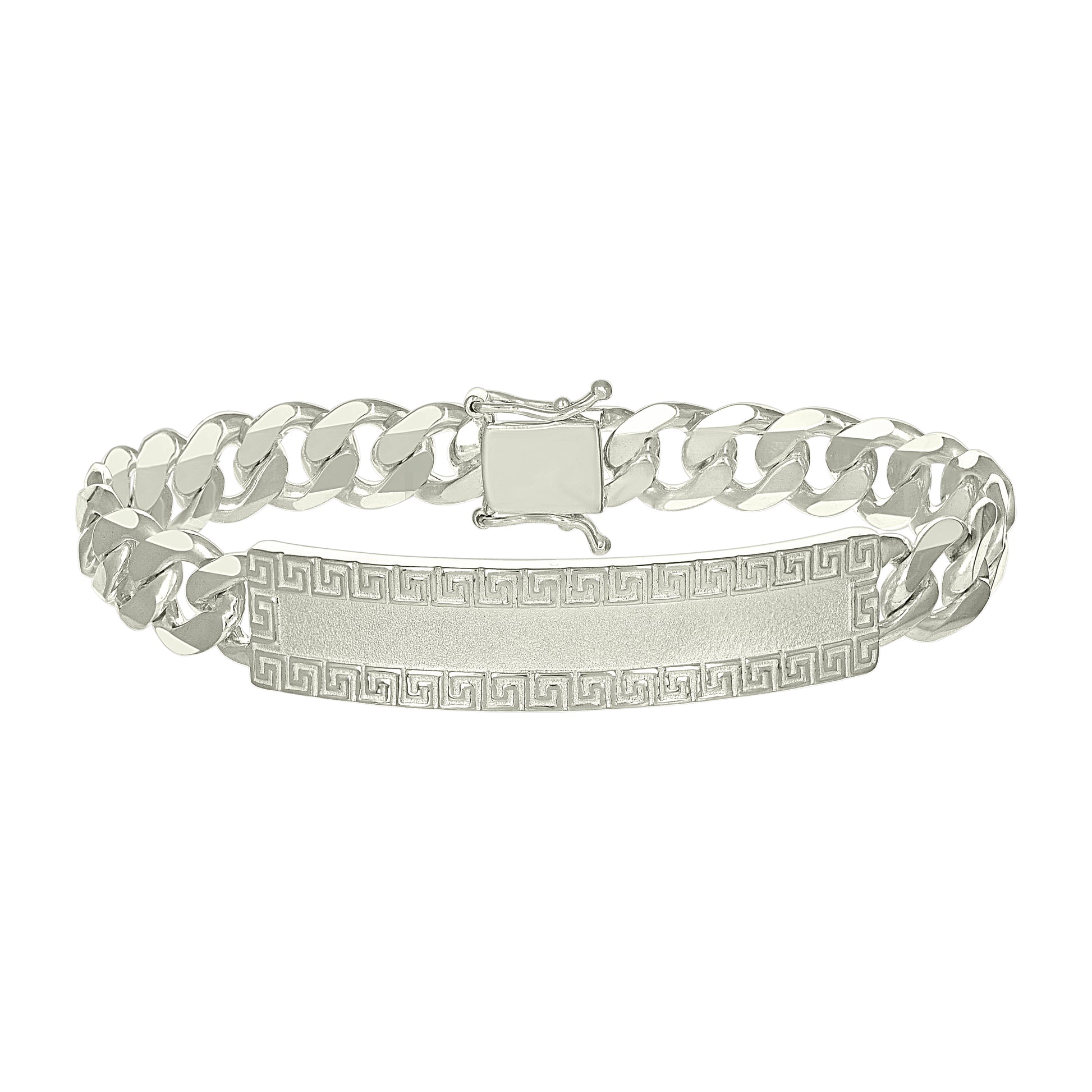 925 Sterling Silver Mens Cuban Link Greek Key ID Bracelet Size 8 Inches