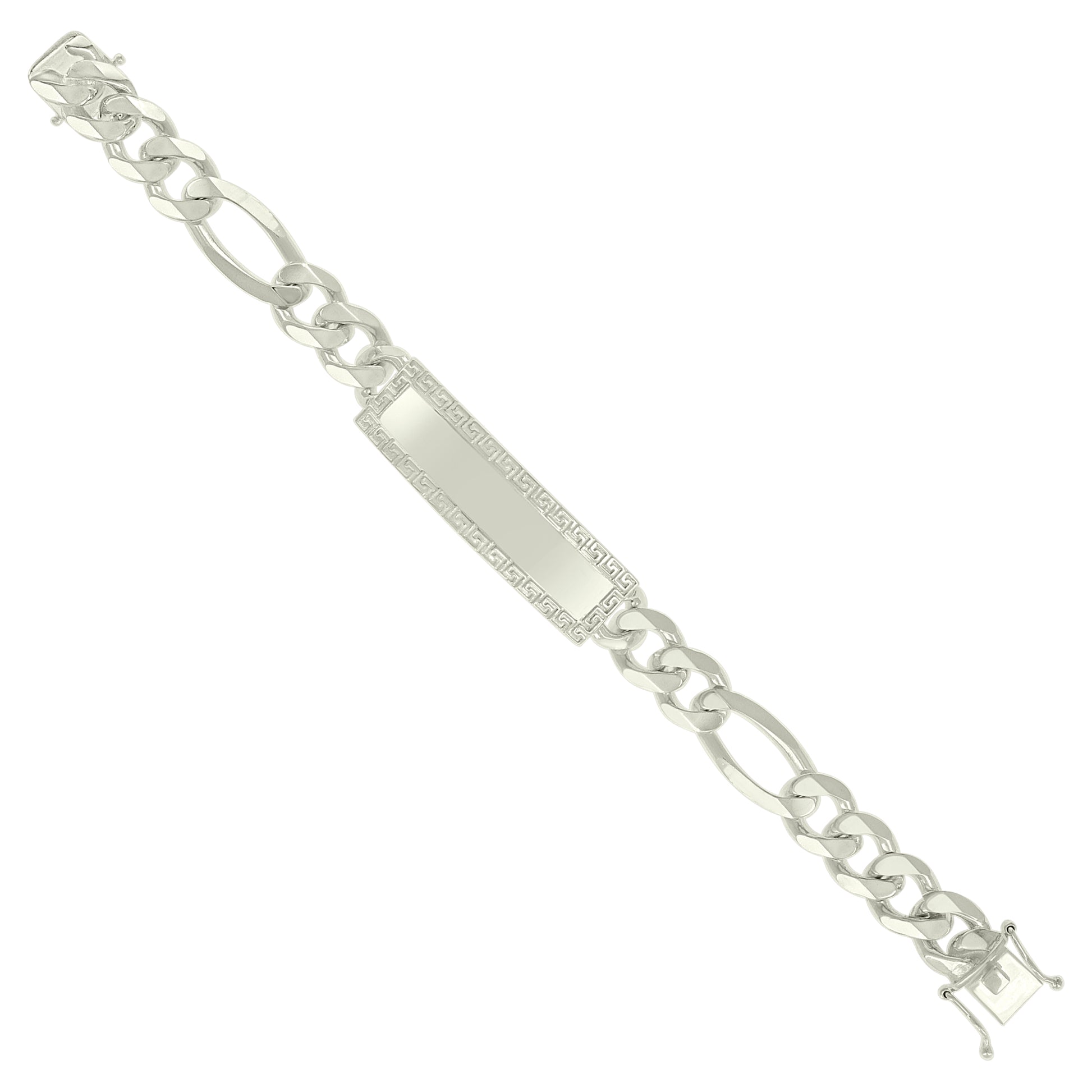 925 Sterling Silver Mens Cuban Link Greek Key ID Bracelet Size 8 Inches