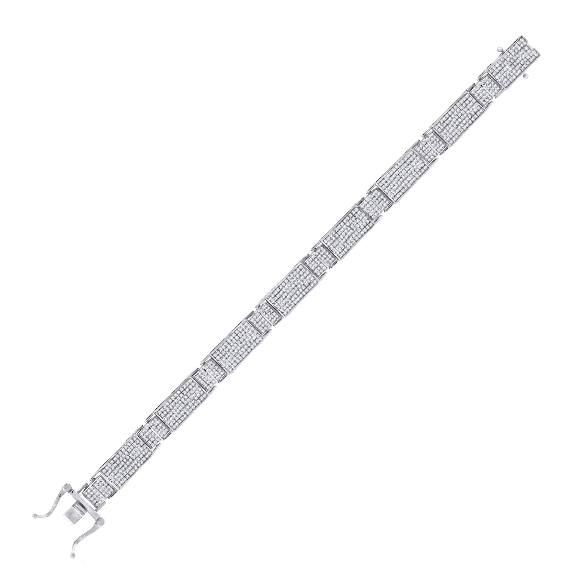 925 Sterling Silver Unisex Micropave Cubic Zirconia Link Bracelet