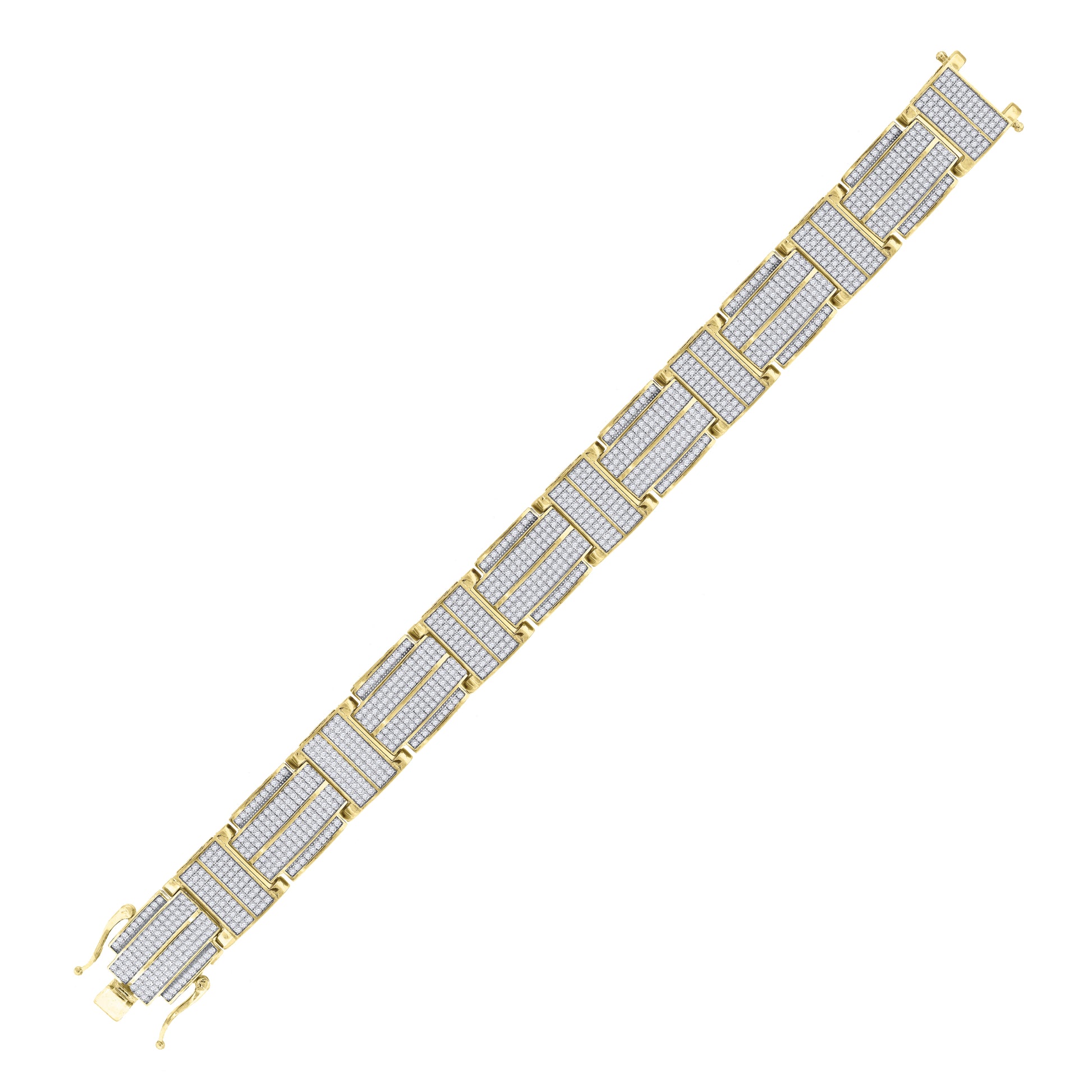 925 Sterling Silver Yellow-Tone Unisex Micropave Cubic Zirconia I-Link Bracelet