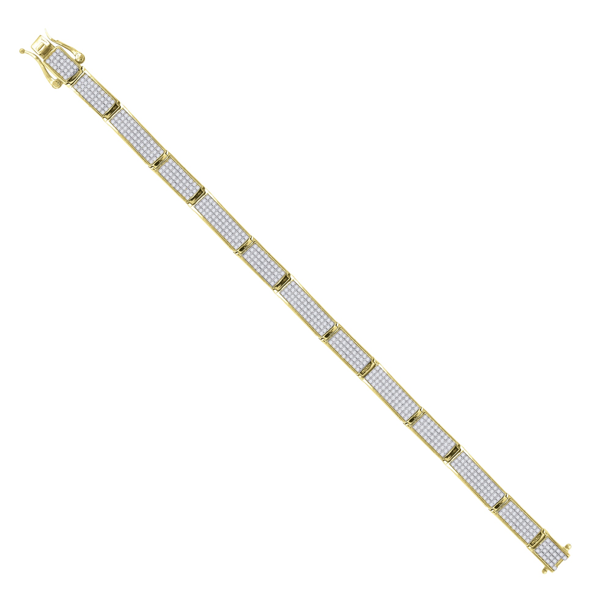 925 Sterling Silver Yellow-Tone Unisex Micropave Cubic Zirconia Link Bracelet